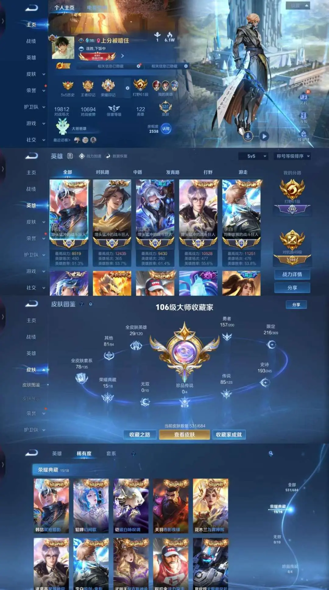 禁言V10!打野62段8国服!16典藏83传说弑枪猎影玉鸾吟全兔年白虎志梅西赤影疾锋