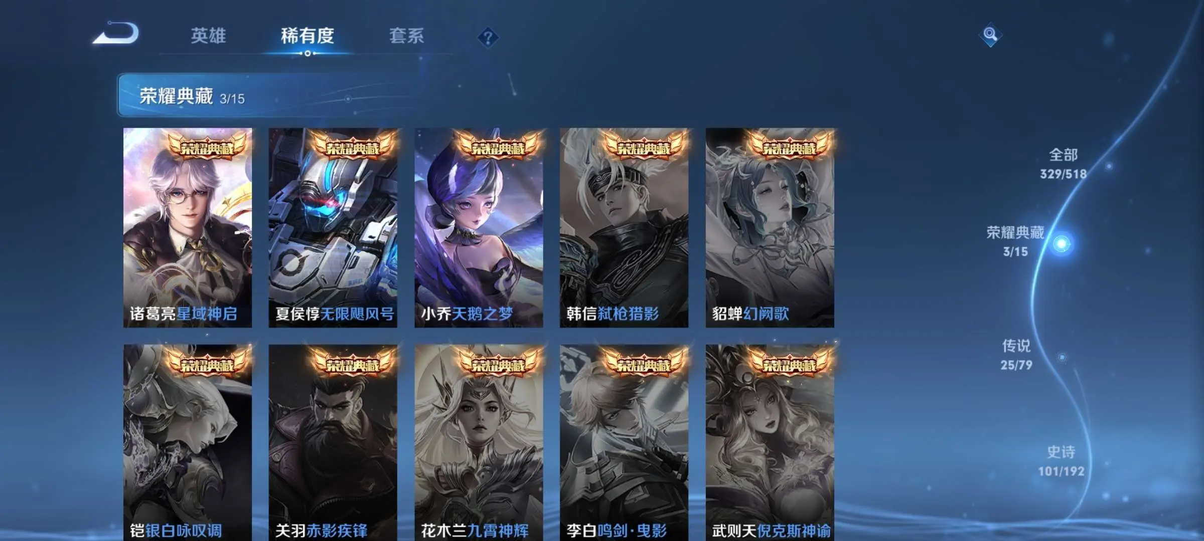 本游戏账号: V10用户,基础段位:永恒钻石II,英雄多,皮肤多。典藏皮肤3个,感受典藏皮肤带来的优质体验快感,FMVP皮肤2个,尽情享受FMVP皮肤带来的主角光环, 私人所属英雄皮肤有:诸葛亮 星域神启||夏侯惇 无限飓风号||小乔 天鹅之梦铠 绛天战甲||孙尚香 末日机甲||狄仁杰 超时空战士||达摩 黄金狮子座||武则天 海洋之心||貂蝉 仲夏夜之梦||王昭君 乞巧织情||孙悟空 地狱火,等等
