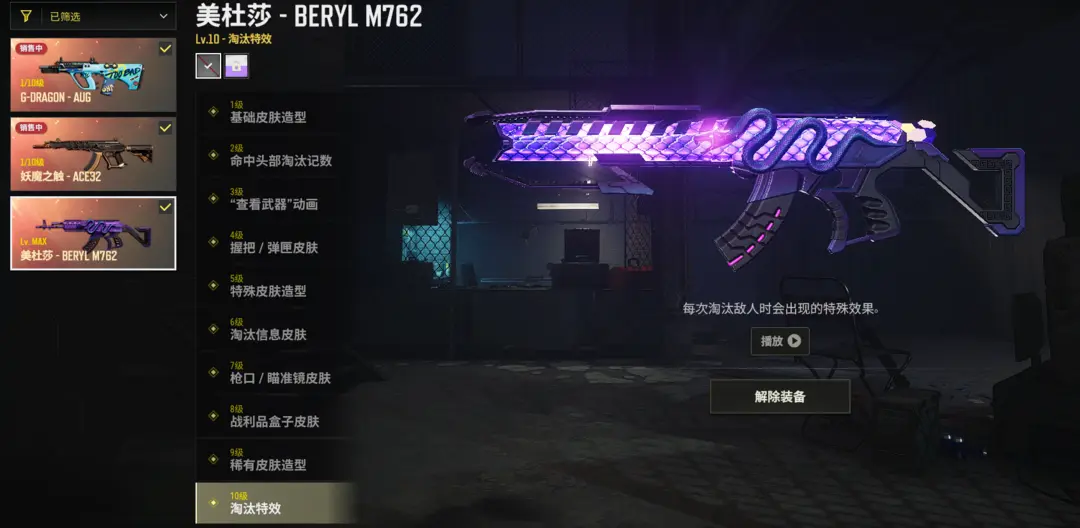 ⑩级美杜莎M762✅(异色)权志龙AUG✅(异色)妖魔ACE✅烈日喷子✅黑鬼金面✅多载具