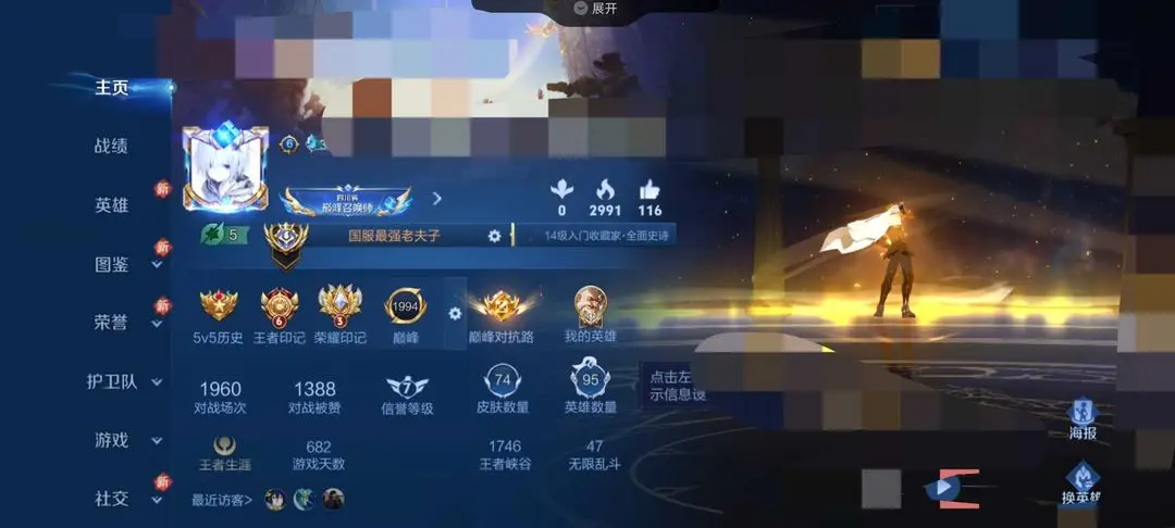 本游戏账号: V10用户,基础段位:永恒钻石IV,英雄多,皮肤多。典藏皮肤4个,感受典藏皮肤带来的优质体验快感,FMVP皮肤5个,尽情享受FMVP皮肤带来的主角光环, 私人所属英雄皮肤有:瑶 拾光映像||程咬金 活力突击||夏侯惇 无限飓风号||武则天 倪克斯神谕澜 愿照·九州拓||虞姬 愿照·岁时盈||云缨 幻光神枪||蔡文姬 愿照·福禄聚||司空震 愿照·山河定||女娲 愿照·千秋盛||妲己 愿照·众生和||孙尚香 音你闪耀||嬴政 玄雷天君||桑启 鸣野蒿||亚连 落雪白狼||貂蝉 曦玄引||吕布 曦玄引||周瑜 音你心动||虞姬 云霓雀翎||李元芳 飞鸢探春||典韦 战鼓燎原||孙尚香 乘龙·问璇玑||孙策 乘龙·淬吴钩||赵云 乘龙·铭钟鼎||艾琳 觅芳踪||马可波罗 深海之息||后羿 无尽星芒||大乔 挚爱花嫁||孙策 挚爱之约||李信 一念神魔||兰陵王 默契交锋||虞姬 启明星使||关羽 武圣||李白 凤求凰||吕布 天魔缭乱||貂蝉 仲夏夜之梦||武则天 海洋之