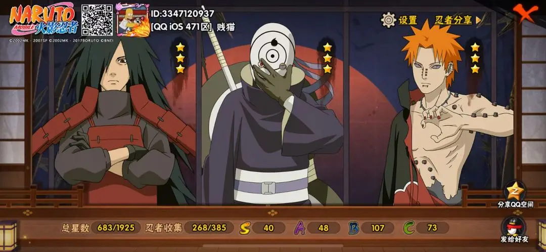 【苹果】 49S丶60A 丶带土已出丶全高招丶须佐卡丶须佐止水丶忍战带土丶天道超丶传说皮肤全收集