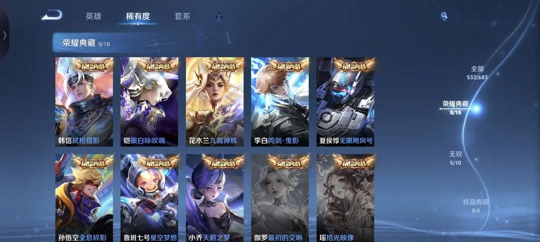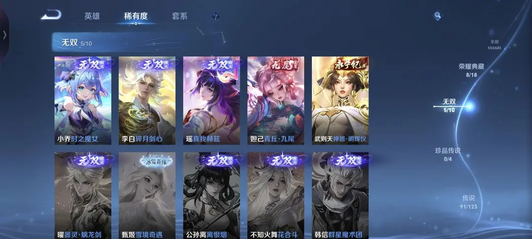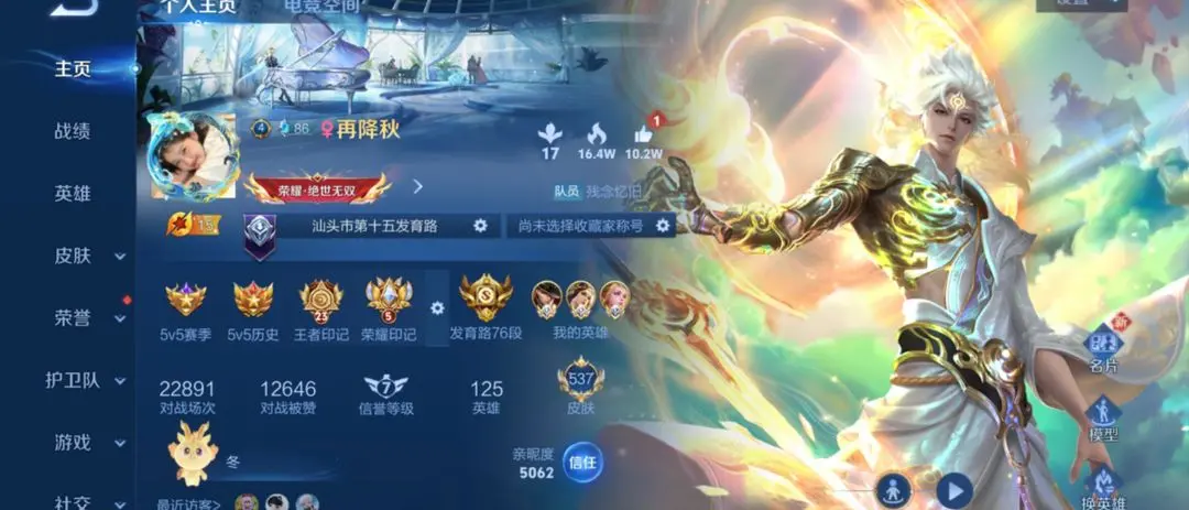 本游戏账号: V10用户,基础段位:至尊星耀II,英雄多,皮肤多。典藏皮肤6个,感受典藏皮肤带来的优质体验快感,FMVP皮肤7个,尽情享受FMVP皮肤带来的主角光环, 私人所属英雄皮肤有:诸葛亮 星域神启||夏侯惇 无限飓风号||韩信 弑枪猎影||花木兰 九霄神辉||虞姬 神鉴启示录||小乔 天鹅之梦诸葛亮 时雨天司||诸葛亮 武陵仙君||大乔 时之奇旅||大乔 挚爱花嫁||铠 绛天战甲||孙尚香 乘龙·问璇玑||孙尚香 异界灵契||孙尚香 末日机甲||公孙离 祈雪灵祝||鲁班七号 时之奇旅||鲁班七号 寅虎·瑞焰||孙策 乘龙·淬吴钩||孙策 挚爱之约||上官婉儿 神器·万象笔||吕布 遇见神鼓||吕布 天魔缭乱||曜 山海·苍雷引||宫本武藏 惊梅引||宫本武藏 地狱之眼||李白 凤求凰||马可波罗 妄想实况||马可波罗 深海之息||狄仁杰 神器·狴犴令||狄仁杰 超时空战士||达摩 黄金狮子座||项羽 无限倾心||关羽 武圣||貂蝉 仲夏夜之梦||貂蝉 遇见胡旋||露娜 启
