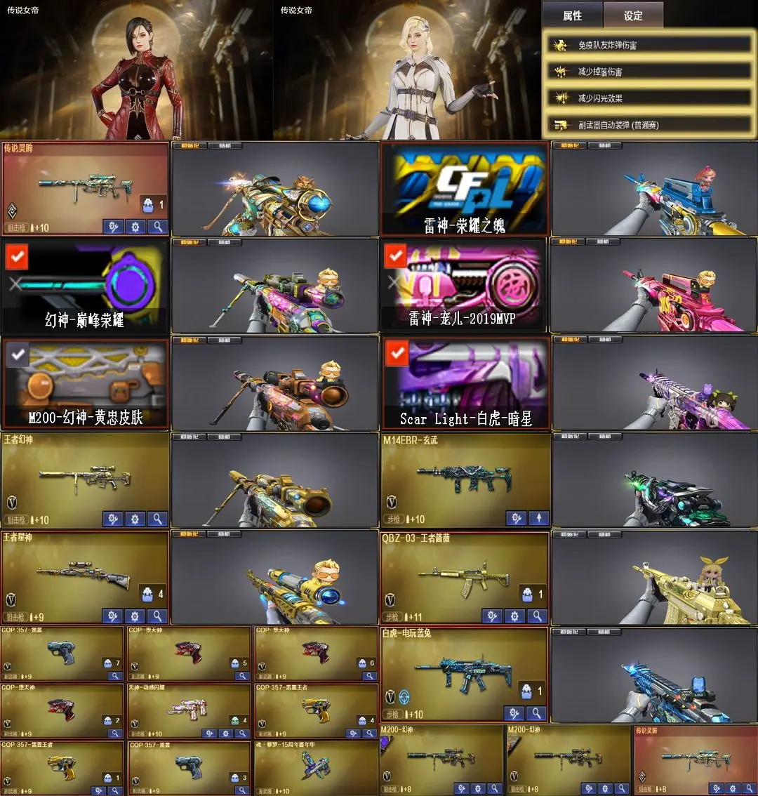【装备道具】:传说灵眸★传说女帝★幻神黄忠★幻神巅峰荣耀★毁灭CFS2020★毁灭耀金/毁灭暗月/毁灭风暴/裁决流光秘银/雷神宠儿2019MVP/传说女帝 樱/炫/零/迷迭香/葵/M200-幻神/王者幻神-觉醒版/堕天神套装★屠龙-动感闪耀 音效卡/裁决音效卡/极光音效卡/M200-幻神音效卡/黑骑士音效卡/金色蔷薇音效卡/白虎音效卡/火麒麟音效卡/毁灭音效卡/雷神音效卡★传说女帝★王者幻神-觉醒版★王者星神★M4A1-堕天神★王者之决★M4A1-雷霆★王者之魄★王者冰魄★王者龙血★HK417-朱雀★白虎-电玩蓝免★M14EBR-玄武★5car白虎★王者蔷薇★COP-堕天神★COP雷霆王者★雷霆之契★幻灵之锋★王者芳薇-觉醒版★王者火魄★荣耀之魄★雷神-虎将★雷神-耀金★白虎-暗星★火麒麟-华夏之心★炫金雷神★炫金毁灭★炫金骑士★炫金天龙★炫金千变★炫金超新星★王者之武★王者之戮★王者之怒★王者之光★王者之力★王者之幻★火麒麟-灵狐★天龙-曼陀罗★雷神-星空★荣耀之证卡牌★变异宝贝死亡对讲机不退包★佣兵觉醒无需换弹手斧镜减速雷★捕食者之眼查看血量★