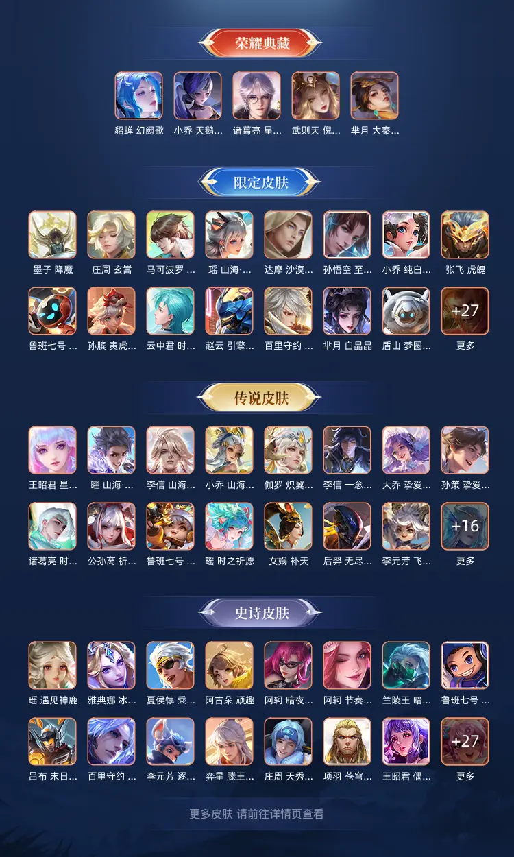 本游戏账号: V10用户,基础段位:永恒钻石II,英雄多,皮肤多。典藏皮肤5个,感受典藏皮肤带来的优质体验快感,FMVP皮肤6个,尽情享受FMVP皮肤带来的主角光环, 私人所属英雄皮肤有:诸葛亮 星域神启||芈月 大秦宣太后||武则天 倪克斯神谕||貂蝉 幻阙歌||小乔 天鹅之梦诸葛亮 鹤羽星尊||诸葛亮 武陵仙君||诸葛亮 时雨天司||大乔 挚爱花嫁||百里守约 碎云||孙尚香 异界灵契||孙尚香 音你闪耀||公孙离 记忆之芯||公孙离 祈雪灵祝||鲁班七号 寅虎·瑞焰||孙策 挚爱之约||上官婉儿 神器·万象笔||周瑜 音你心动||曜 山海·苍雷引||澜 电玩·雷克斯||马可波罗 妄想实况||马可波罗 深海之息||狄仁杰 神器·狴犴令||项羽 无限倾心||武则天 海洋之心||夏洛特 浮生妄||貂蝉 遇见胡旋||貂蝉 仲夏夜之梦||安琪拉 追逃游戏||王昭君 星穹之声||王昭君 乞巧织情||兰陵王 默契交锋||花木兰 燃星之曲||艾琳 觅芳踪||张良 黄金白羊座||不知火舞 绯