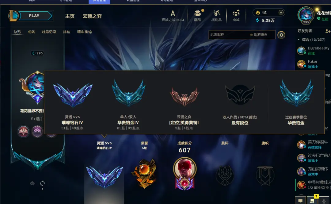 | 角色: 花花世界不要当真#12021 | 等级: 486级 华贵铂金III |