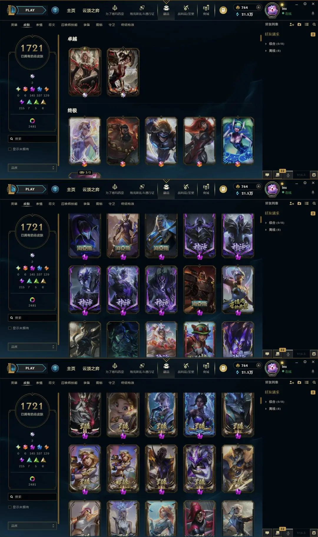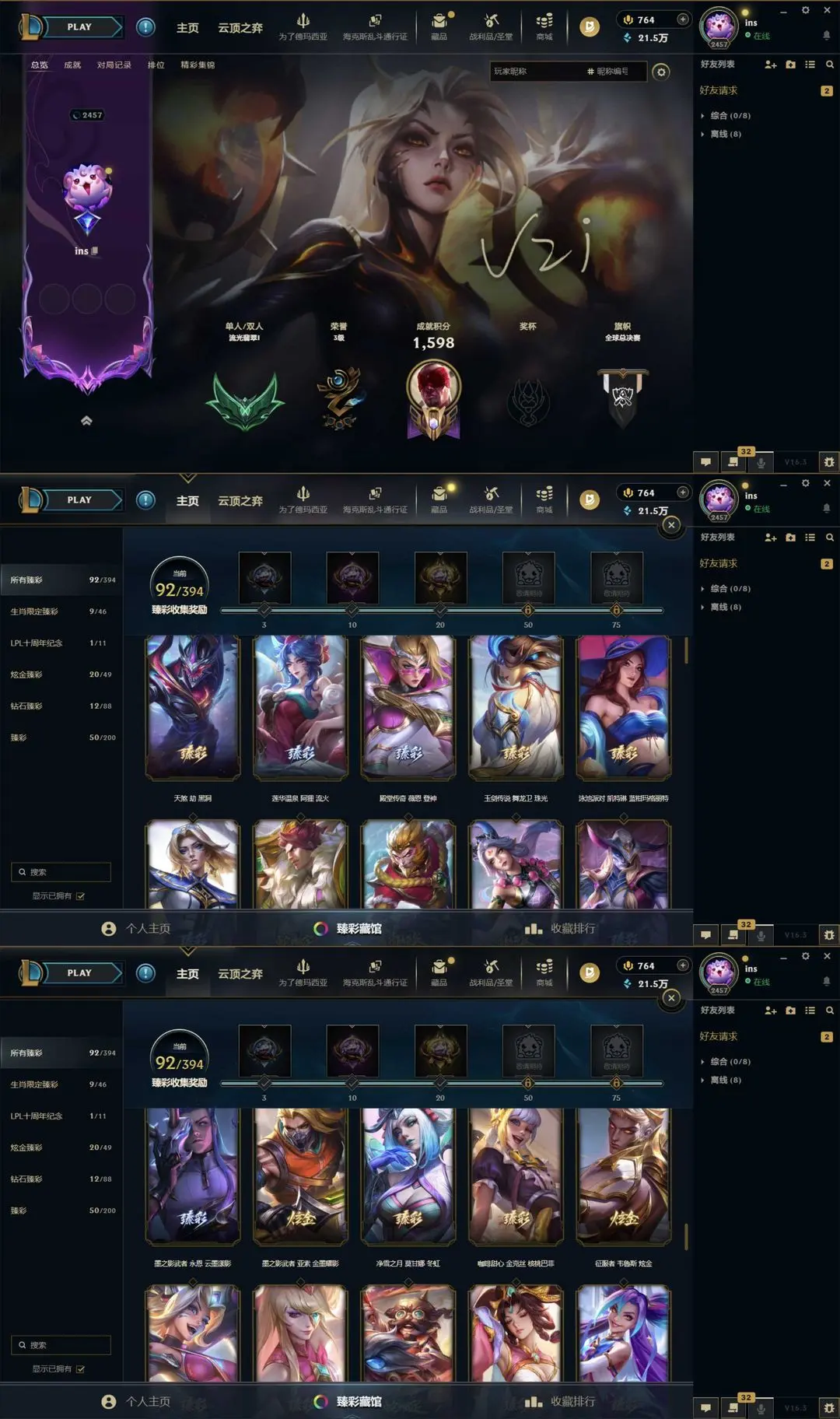 1800p不朽阿狸卡莎神话幻想圣天龙♥️云顶30神话狼神英灵殿黑夜黎明水云天池胖胖龙群星依旧