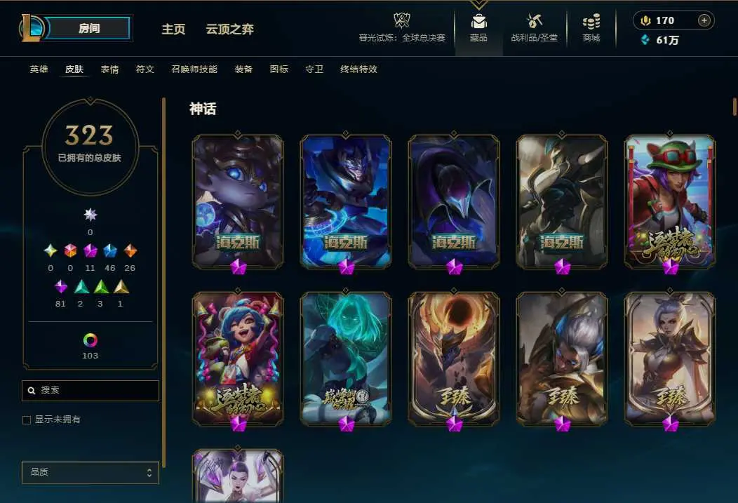 【艾欧尼亚】320P全英雄可排位⭐至臻暗星墨菲特⭐至臻神龙尊者炎龙瑟提⭐至臻K/D莎灵魂莲华亚索⭐