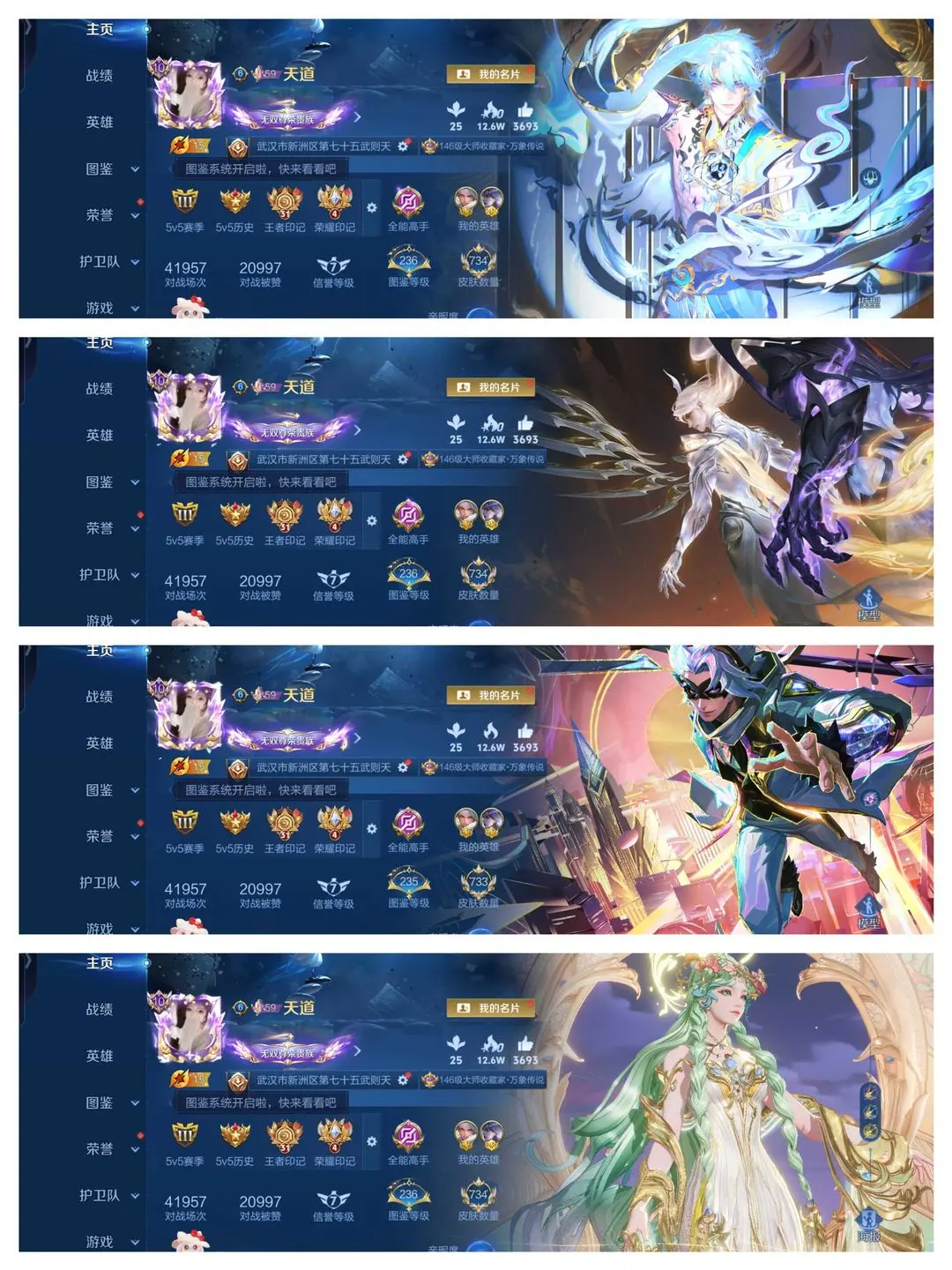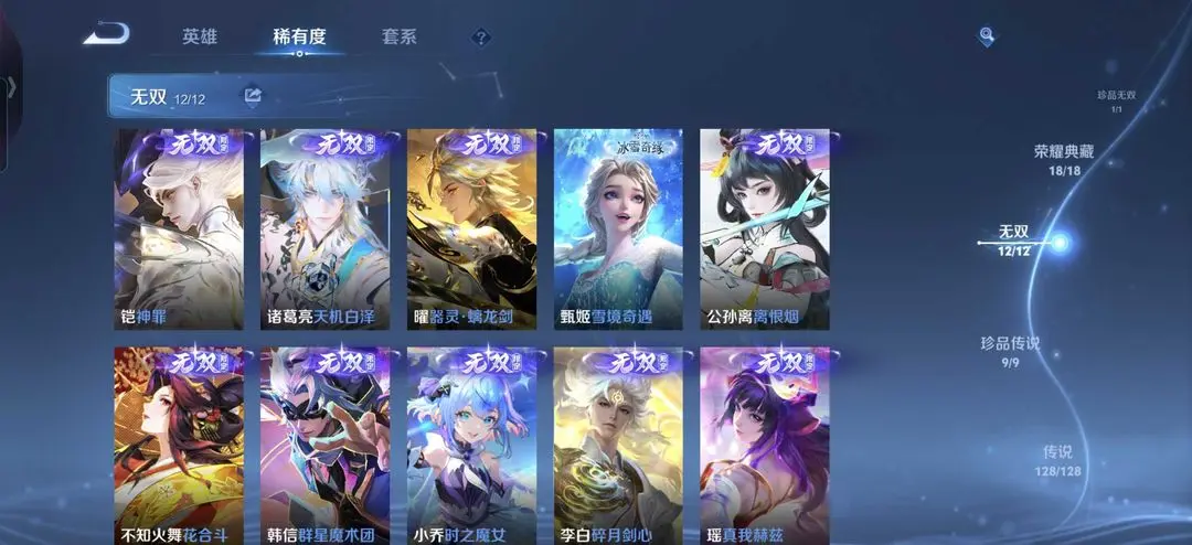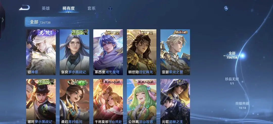 743满皮肤♥杨戬纵目迁山凯神罪诸葛亮无双白泽〖貂蝉穆夏♥馥梦繁花〗满珍品传说天幕✨满水满星