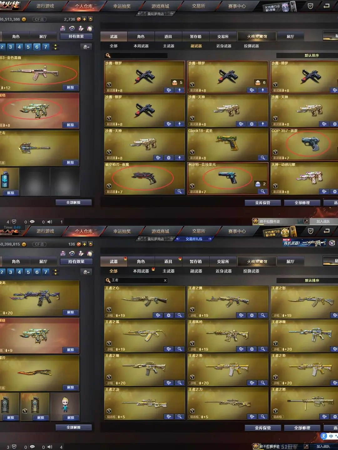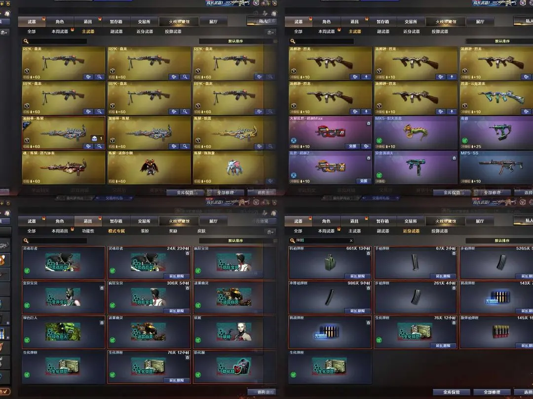 本游戏账号:英雄武器202个; 王者武器49个。 可以玩爆破号、生化号、双全装、稀有武器、等模式。装备不多,但是主武器、副武器、近身武器够用 拥有完美游戏体验。重要的是,特殊装备有:麒麟刺、黑骑士-海王、M4A1-玫瑰精灵、M200-幻神、传说圣灵、M200-竞技荣光、柯尔特-竞技荣光、擎天-竞技荣光、闪光弹-竞技荣光、烟雾弹-竞技荣光、传说辉光、加特林-炼狱、传说梦魇、USP-雷暴、AK47-火麒麟、HK417-朱雀、龙啸-堕天神、传说暗裔、王者火魄、王者之影、王者之幻、王者之势、王者之武、王者之霆、炫金武、王者之锋-觉醒版、炫金骑士、炫金火麒麟、炼狱-悦蓝-觉醒版、炫金天龙、王者之力-觉醒版、王者之魄-觉醒版、炫金雷神、王者之势-觉醒版、王者之力、王者冰魄-觉醒版、王者之怒-觉醒版、王者之光-觉醒版、王者炎心、王者白虎-觉醒版、王者之心-觉醒版、火麒麟-绝迹、迷迭香、魅影、沙漠玫瑰、王者-魅影、王者-瞳-闭月羞花、职业选手、灵狐者-职业经理、王者-零、
