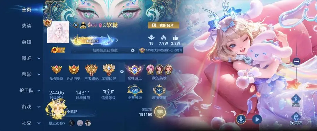 美神降世称号 账号描述:不禁言女用在榜省金牌瑶大桥朵莉亚少司缘 最新皮肤瑶典藏也买了 746皮+15星传说绿巧黑孔雀,传说123个满 10大无双,库洛米全套天幕+全部无双至尊皮肤+永久四传说灵宝+超多局内动作表情特效+龙年贵族邀请+血条皮肤+典藏小兵皮肤 随游戏更新补齐皮肤按键+超多星史诗+全套KPL比赛史诗星元不确认游戏,消极比赛毁号,涉及毁坏虚拟财产罪及计算机安全罪,请文明游戏素质游戏,让我们共建美好租号平台>>>>>> 本游戏账号: V10荣耀贵族用户,基础段位:最强王者,英雄虽然少,应该有你喜欢的英雄。,皮肤目前不多,希望有你喜欢的。1 注意事项: A.游戏过程中请不要恶意挂机或者不文明发言;B.恶意挂机、顶号等行为将被拉黑无法再次下单;C.进入游戏后中途请勿退出登陆,否则无法再