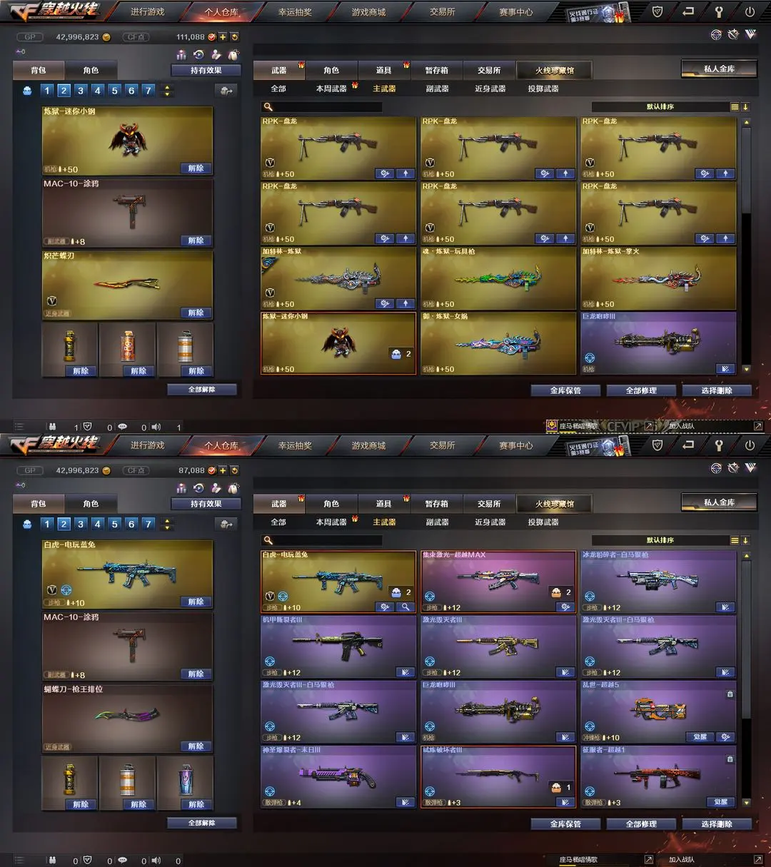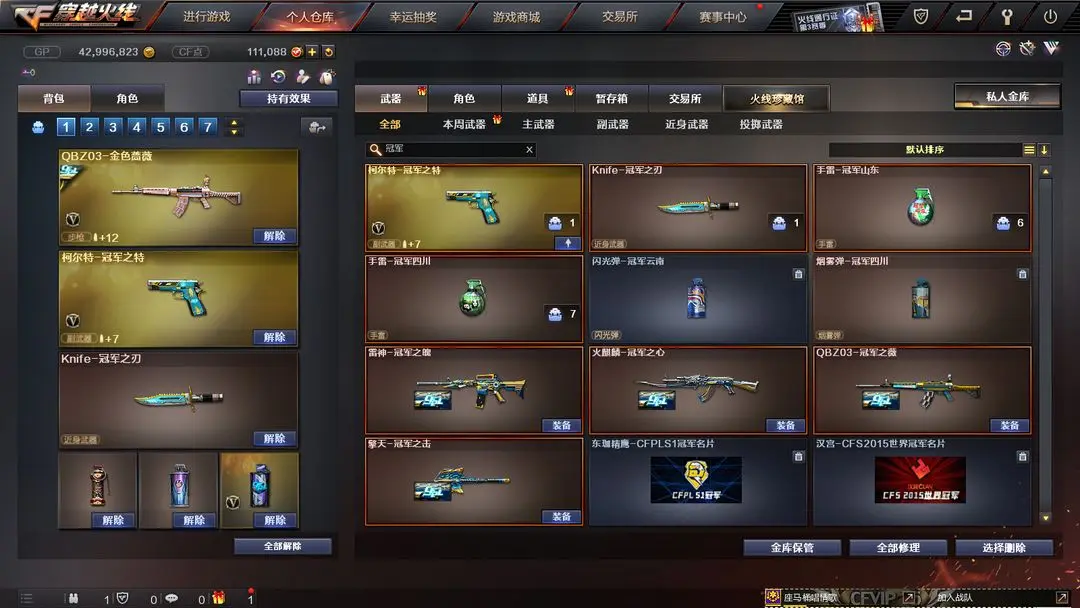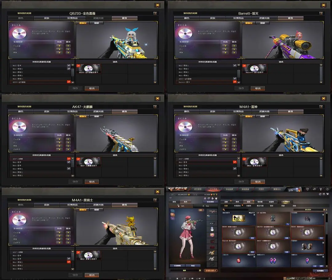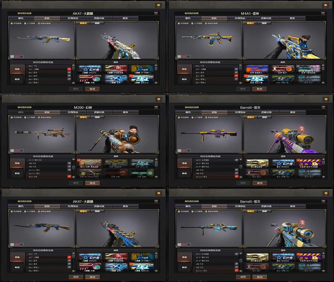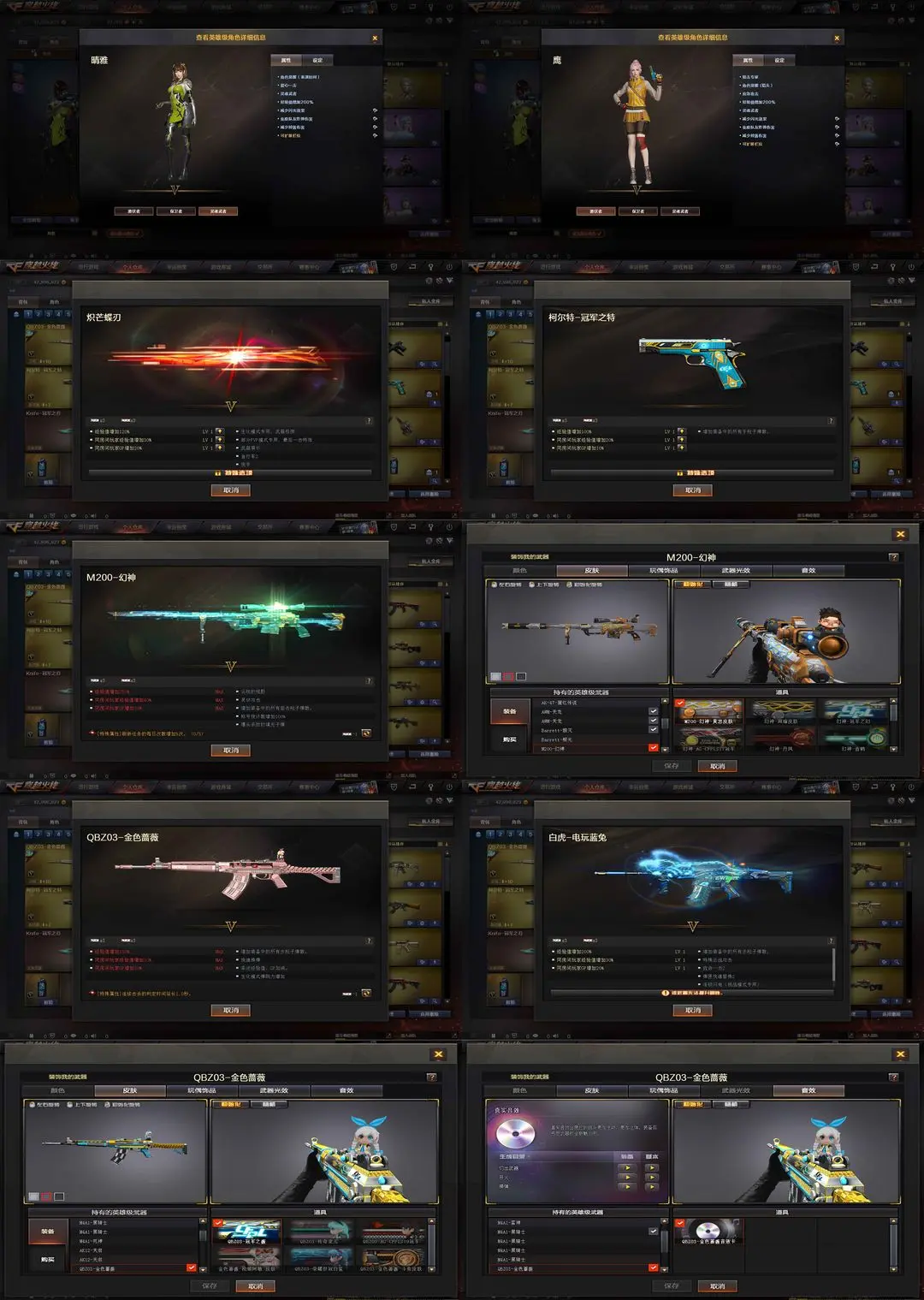 【装备道具】:QBZ-冠军之薇★Knife-冠军之刃★柯尔特-双冠军之特★火麒麟-冠军之心★【M200-幻神+幻神黄忠皮肤+冠军之特+冠军之刃+炽芒蝶刃蝴蝶刀】-qbz金色蔷薇(qbz音效卡★qbz-冠军之薇)-白虎电玩蓝兔-毁灭(毁灭音效卡+耀金+cfs2018+虎牙毁灭皮肤)-火麒麟(火麒麟音效卡+cfs2018+冠军之心)-雷神(雷神音效卡+冠军之魄)-黑骑士(耀金皮肤+黑骑士音效卡)-死神-天启-天龙-极光-暗月传说-(6盘龙+炼狱+迷你小刚)-(6烈龙+斯泰尔蝴蝶)-修罗-天神-屠龙-擎天(冠军之击)-麒麟刺-(角色:晴雅3防、鹰3防、)