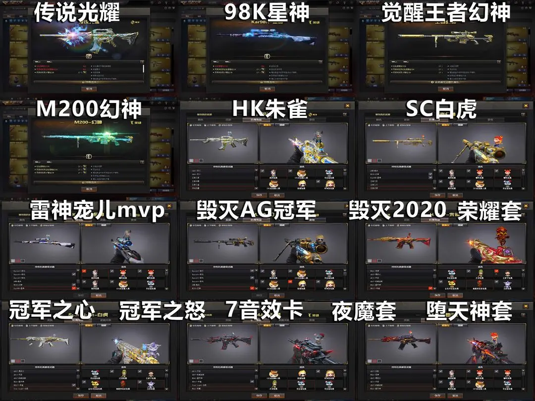 【装备道具】:传说光耀★98k星神★觉醒王者幻神★M200-幻神★宠儿雷神mvp★SCAR-白虎★AG毁灭冠军皮肤★毁灭cfs2020★冠军之心★冠军之怒★赛事荣耀全套★火麒麟轻羽★雷神虎将★AG战队火麒麟★耀金皮肤★星空皮肤★凌霄夜魔套★堕天神套★迷迭香★7烈龙6盘炼狱★火麒麟绝迹★雷神精英刀锋★火麒麟灵狐★天龙曼陀罗★职业选手★迷迭香凌霄葵樱★7音效卡★COP堕天神★破空枪刃夜魔★柯尔特-电竞装甲★朱雀★觉醒王者之心王者之魄王者王者之势王者之幻王者之击烈龙悦心★王者冰魄王者之影王者之鲨王者之力王者之怒★炫金雷神炫金火麒麟炫金骑士★生化不退宝无需换弹★爆破生化挑战全装★荣耀枪王段位━━━━━━━━ 【租用须知】: 由于系统兼容性,部分客户在使用客户端自动上号时出现密码错误,本号密码不会错误 ,请多尝试几次!请勿乱投诉增加撤单率,恶意投诉撤单将永久拉黑。租号前请仔细查看武器账号描述详情,欢迎老铁常租,如果喜欢这个账号望请收藏!