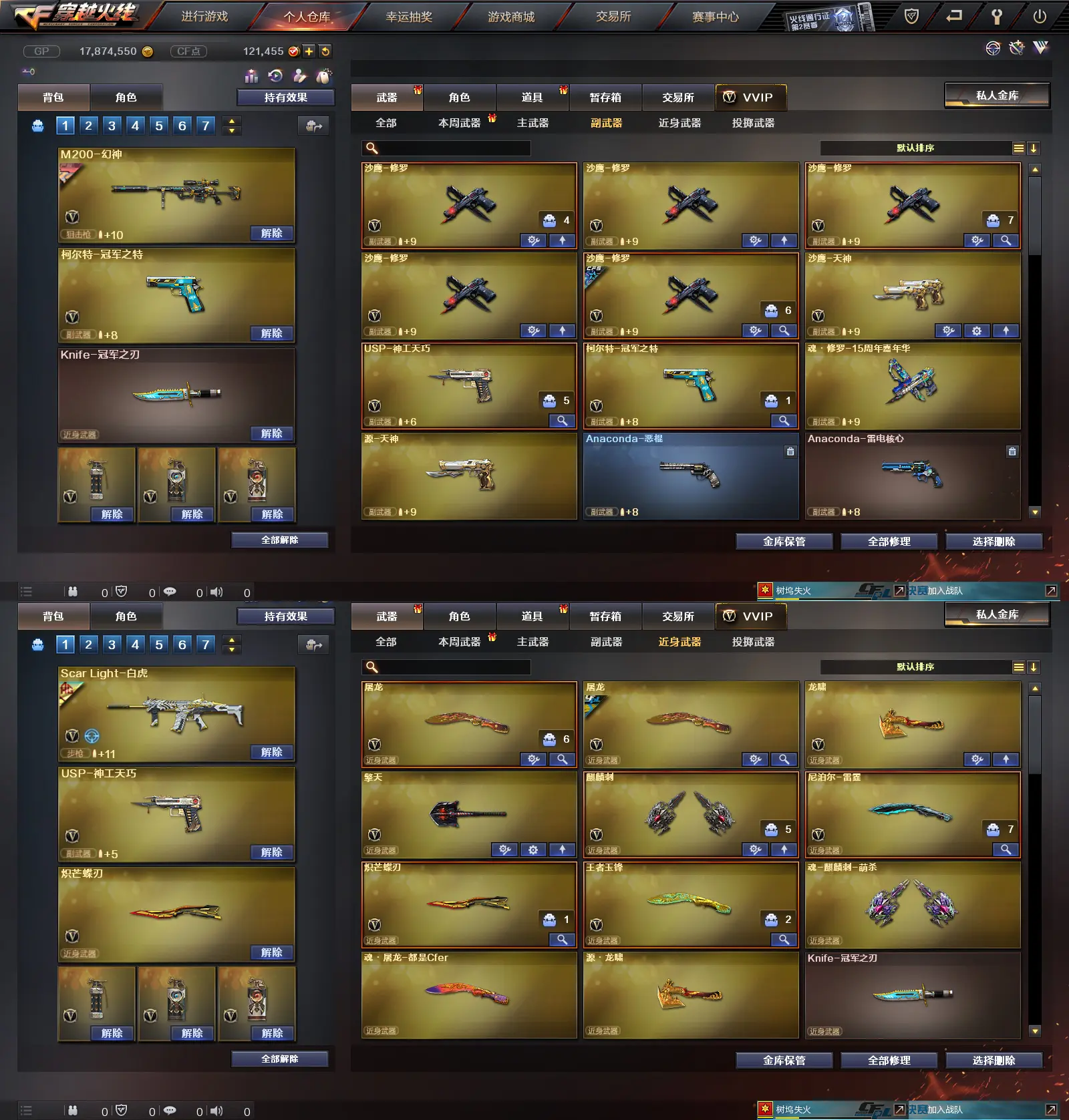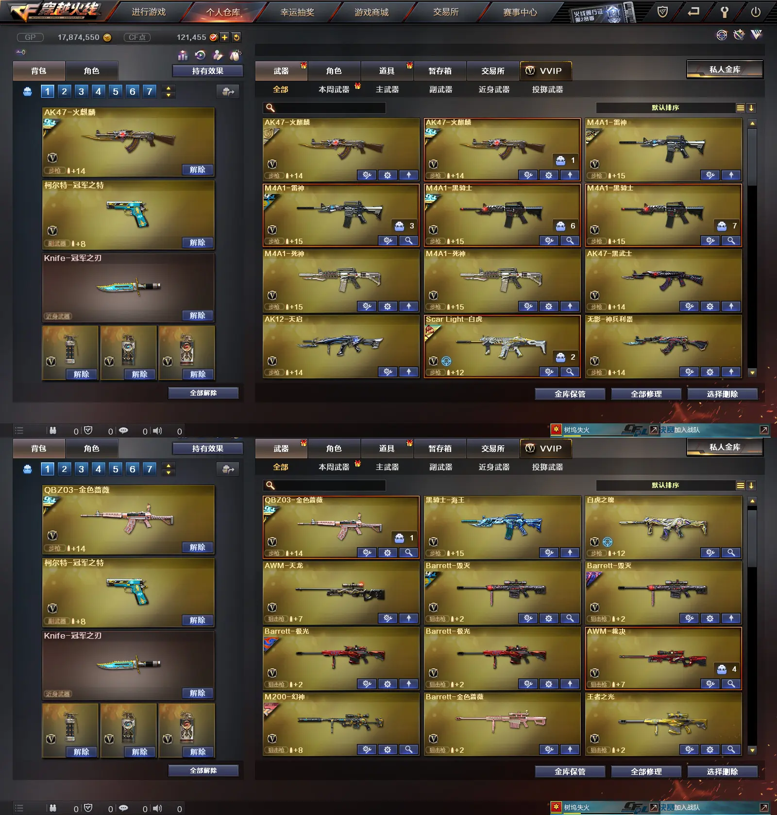 【装备道具】:QBZ-冠军之薇★Knife-冠军之刃★柯尔特-双冠军之特★火麒麟-冠军之心★黑骑士-冠军之势★【4防传说艾莉莎+炽芒蝶刃】【m200-幻神+幻神-cfs2022+幻神音效卡+柯尔特-冠军之特+冠军之刃】【qbz金色蔷薇★qbz-冠军之薇★qbz音效卡+usp-神工天巧+神工天巧手蕾套】【scar白虎+白虎-ag20冠军+白虎-大汉风骨+白虎音效卡+白虎之魄】【火麒麟+火麒麟-cfs2018+火麒麟-冠军之心+火麒麟音效卡】【裁决+裁决音效卡】【毁灭+毁灭-荣耀之怒+毁灭-直播+毁灭音效卡】【雷神+雷神-荣耀之魄+雷神-星空】【黑骑士+黑骑士-冠军之势+黑骑士-战神马超】【修罗+修罗-cfs2018】【屠龙+屠龙-荣耀之锋】【尼泊尔-雷霆+雷霆手蕾套】【6烈龙+6盘龙+迷你小刚+斯泰尔-蝴蝶+死亡之眼】 王者之光 王者玉锋 死神 黑武士 天启 天神 龙啸 擎天 麒麟刺 【小人呛】 m4a1-雷神-精英刀锋 【角色】传说艾莉莎 4防晴雅 4防女主播 4防暗夜审判 葵★★荣耀之证卡牌★变异宝贝死亡对讲机不退包★佣兵觉醒无需换弹手斧镜减速雷★捕食者之眼查看血量★