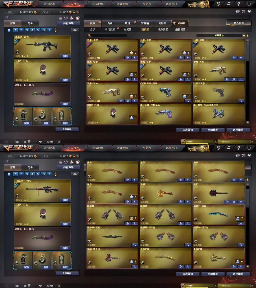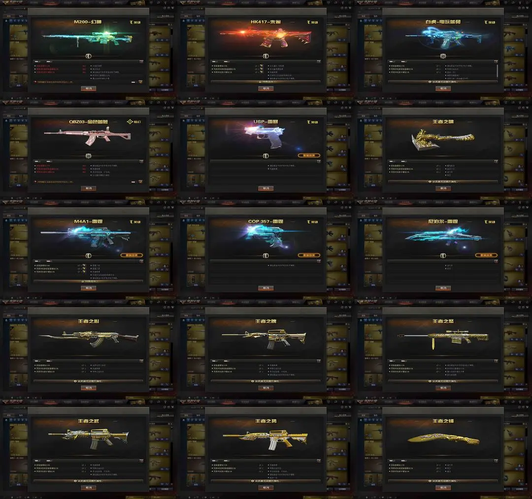 【装备道具】: 【m200-幻神+幻神-cfs2022+usp雷暴+斩神刀-雷暴+雷暴手雷套】【m4a1-雷霆+cop-雷霆+尼泊尔-雷霆+雷霆手蕾套】【qbz金色蔷薇★qbz-ag19冠军★qbz音效卡】【白虎-电玩蓝兔+hk417-朱雀】【火麒麟+火麒麟-冠军之心+火麒麟-雷神+火麒麟音效卡】【黑骑士+黑骑士-cfs2021+黑骑士音效卡】【雷神-荣耀之魄+雷神-宇航兔+雷神音效卡】【黑龙+黑龙-361】【毁灭+毁灭-荣耀之怒+毁灭音效卡】【天龙+天龙-传奇白鲨】【极光+极光-能量核心】【修罗-cfs2018】【龙啸-堕天神+麒麟刺-堕天神+堕天神手蕾套】【5烈龙+5盘龙+炼狱+斯泰尔-蝴蝶+死亡之眼】 王者之心 王者之翼 王者之影 王者之幻 王者之戮 王者之魄 王者之势 王者之武 王者之怒 王者之锋 王者之啸 炫金雷神 炫金毁灭 超新星 机械迷城 黑鲨 龙血 裁决 天神 屠龙 龙啸 擎天 麒麟刺 【小人枪】 cop-白鲨 【角色】 4防鹰 4防王者葵貂蝉 4防王者魅影 零 迷迭香 樱 炫 王者瞳-闭月羞花 王者樱-热浪之夏★佣兵觉醒无需换弹手斧镜减速雷★捕食者之眼查看血量★
