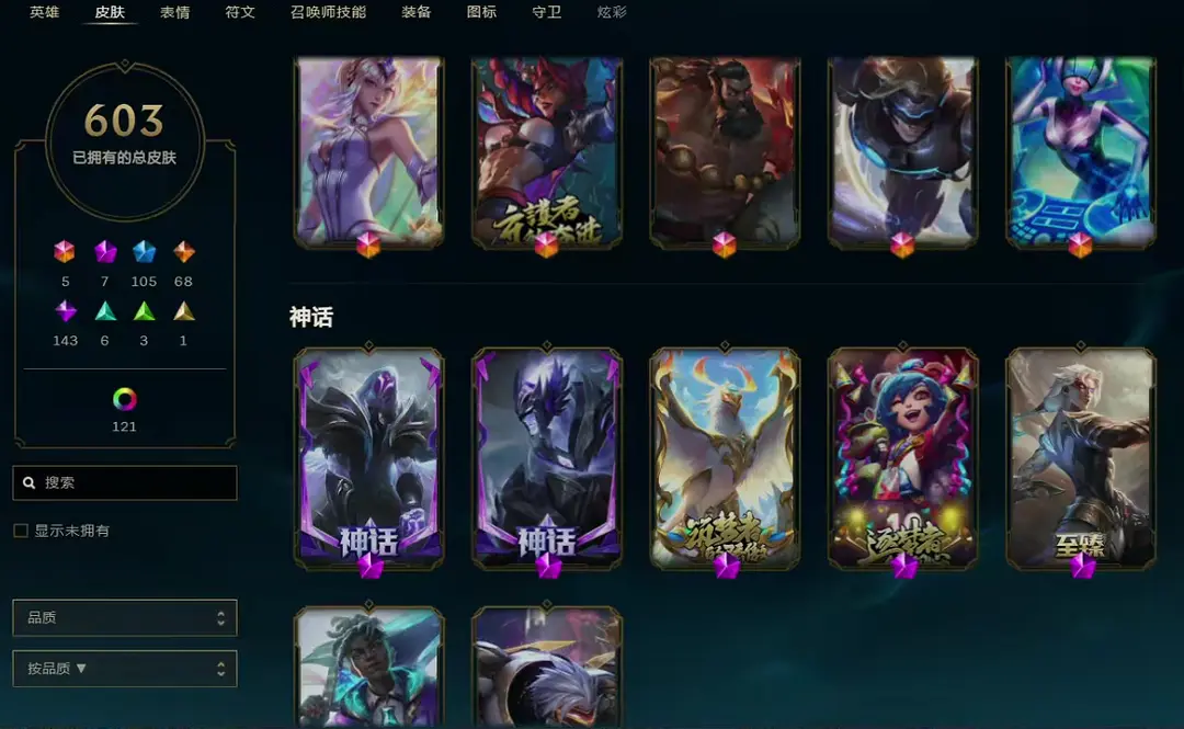 艾欧尼亚634原皮⭐单双黄金负胜率斗魂觉醒莎弥拉云顶黎明使者小小锐雯神话棋盘猩红狼啸庭