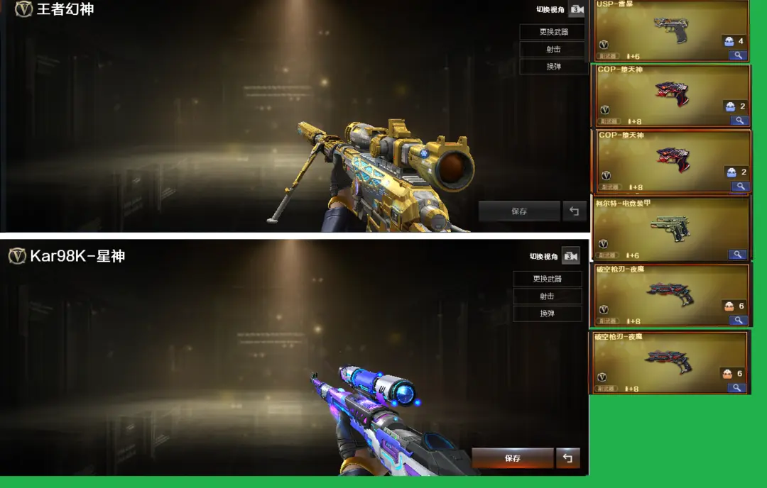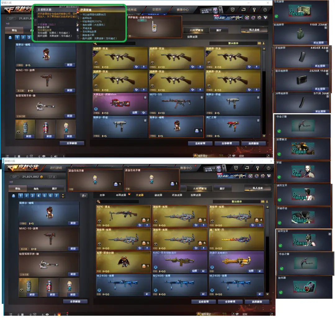 排位:可以----------------生化极品压力全装(生化模式换背包、可以查看生化僵尸血量):无需换弹、6烈1盘6炼狱、炼狱小钢、斯太尔蝴蝶、死亡之眼、MAC-涂鸦、2个生化减速手雷、超级对讲机、全部弹匣、、、、、、爆破全装:王者幻神、98K星神、USP雷暴、COP堕天神、破空枪刃夜魔、电竞装甲柯尔特、、、、QBZ金色蔷薇、白虎、传说暗裔、M4夜魔、、、、5套雷暴、7套夜魔、7套电竞装甲、、、、爆破四防(凌霄、王者 魅影)、生化人物(沙漠玫瑰、王者炽天使)