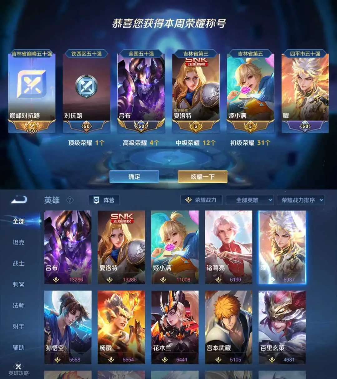 对抗巅峰2161万强框❤️12月在榜全国吕布省3夏洛特姬小满❤神罪碎月剑心九州拓螭龙剑黑崎一护❤禁巅