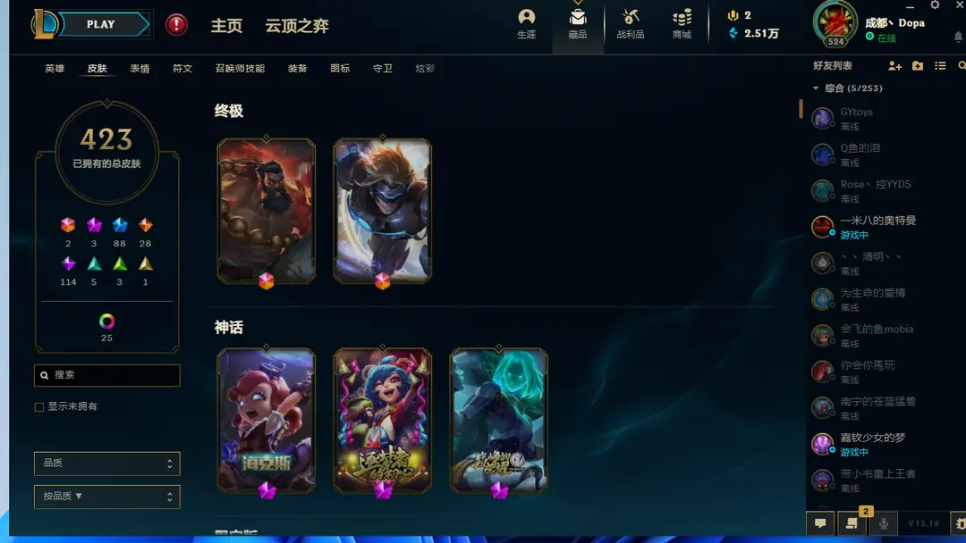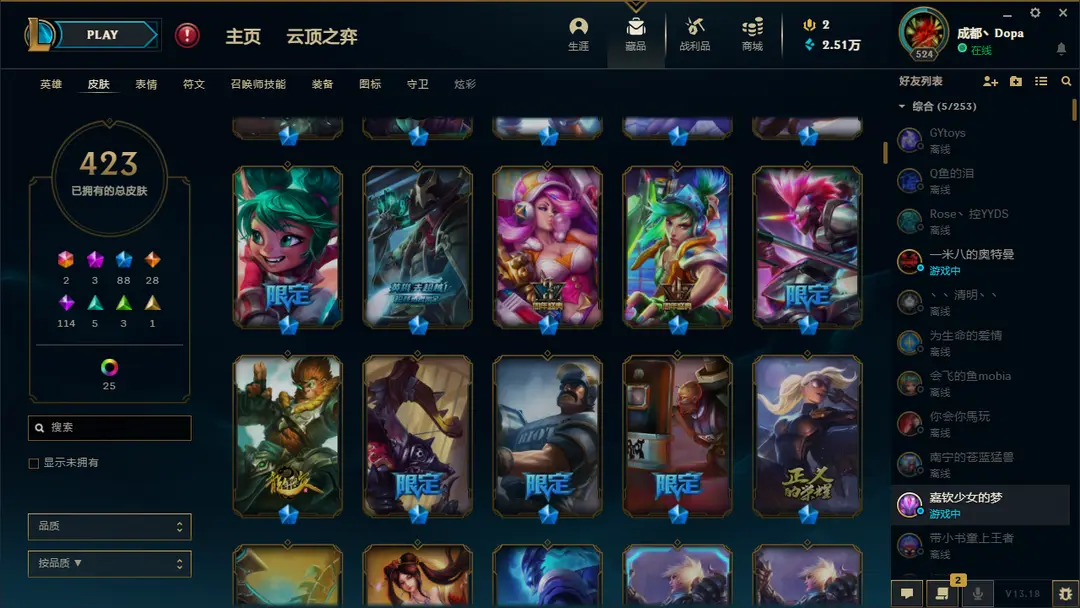 | 角色: 成都丶Dopa#33508 | 等级: 1118级 华贵铂金III |