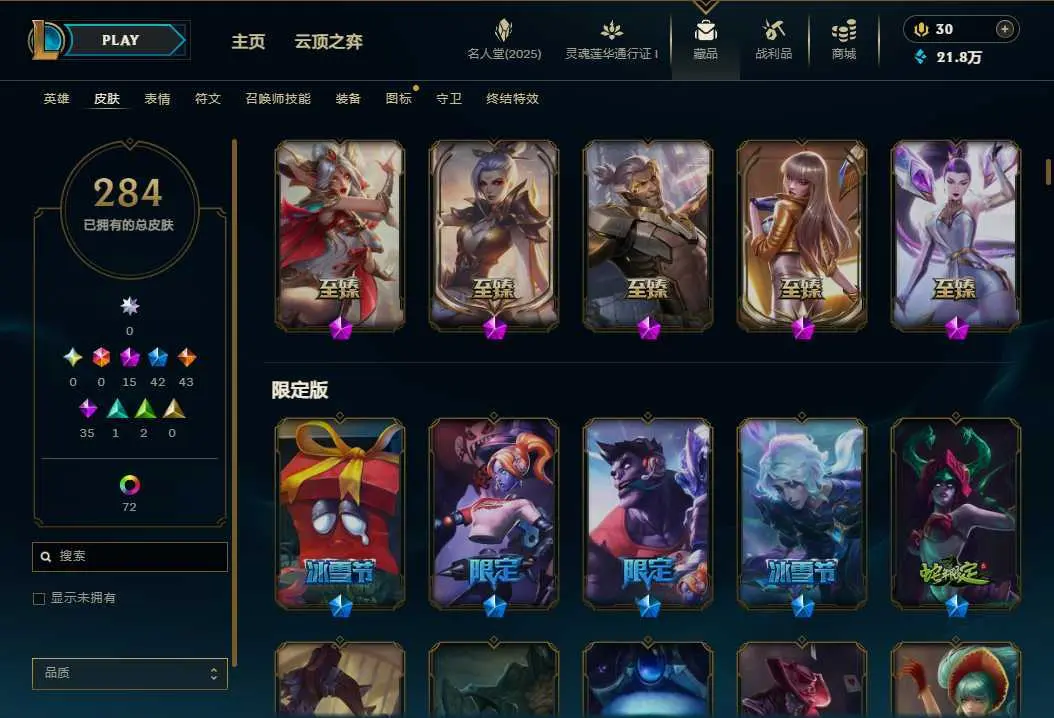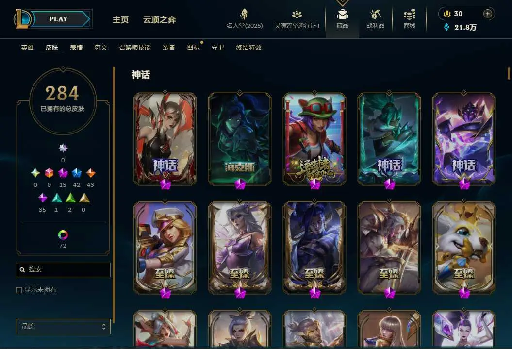 【黑色玫瑰】280P全英雄可排位⭐至臻玉剑传说武剑仙⭐至臻K/DA卡莎⭐至臻墨之影武者亚索⭐