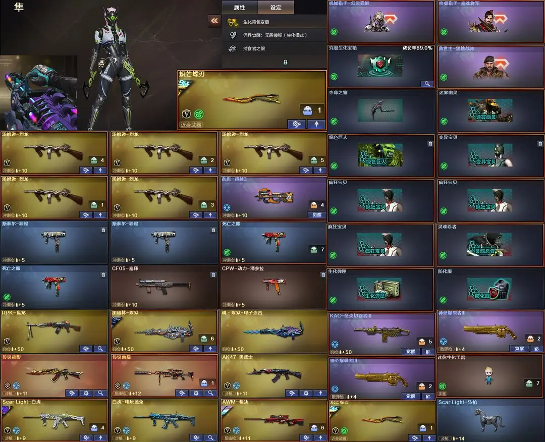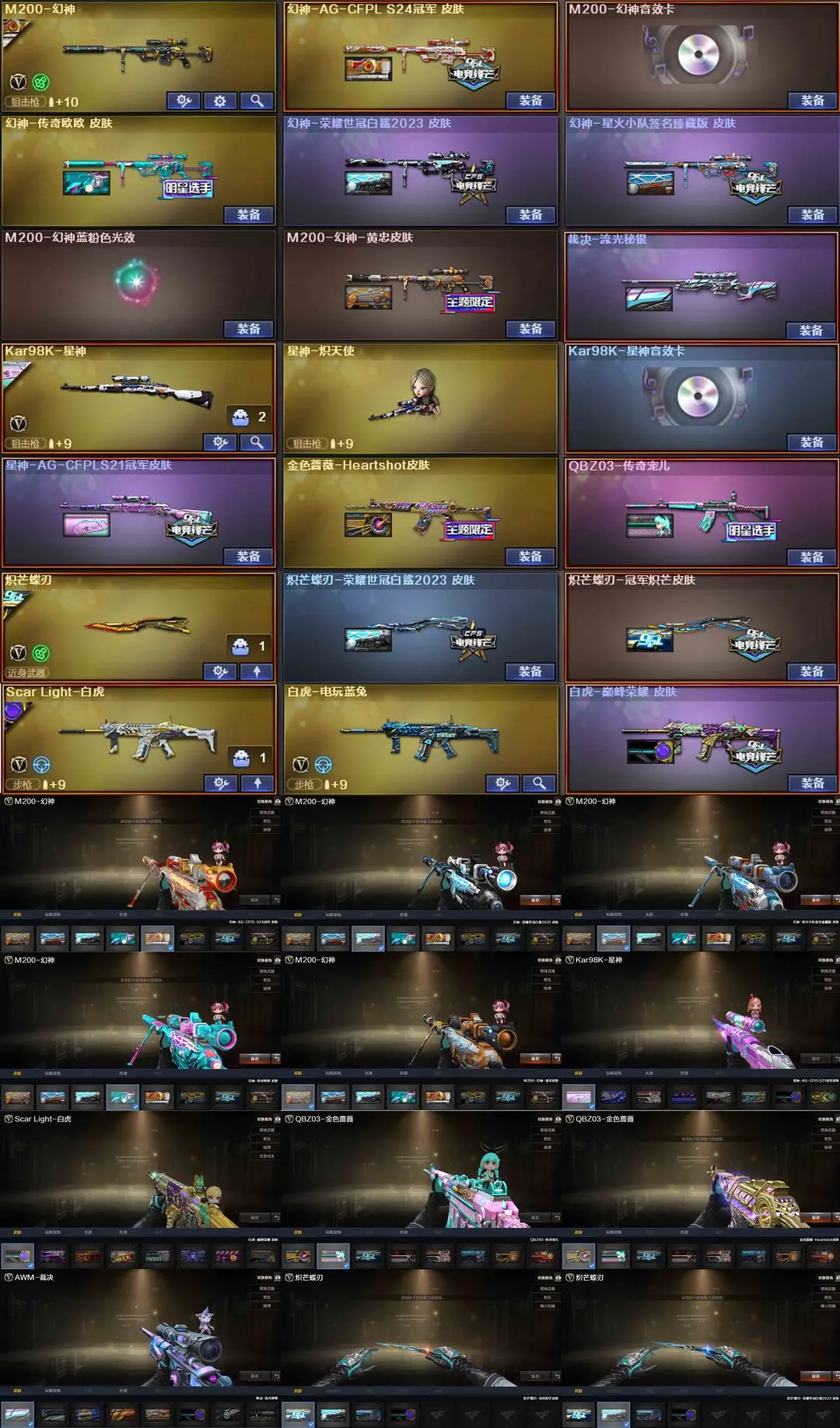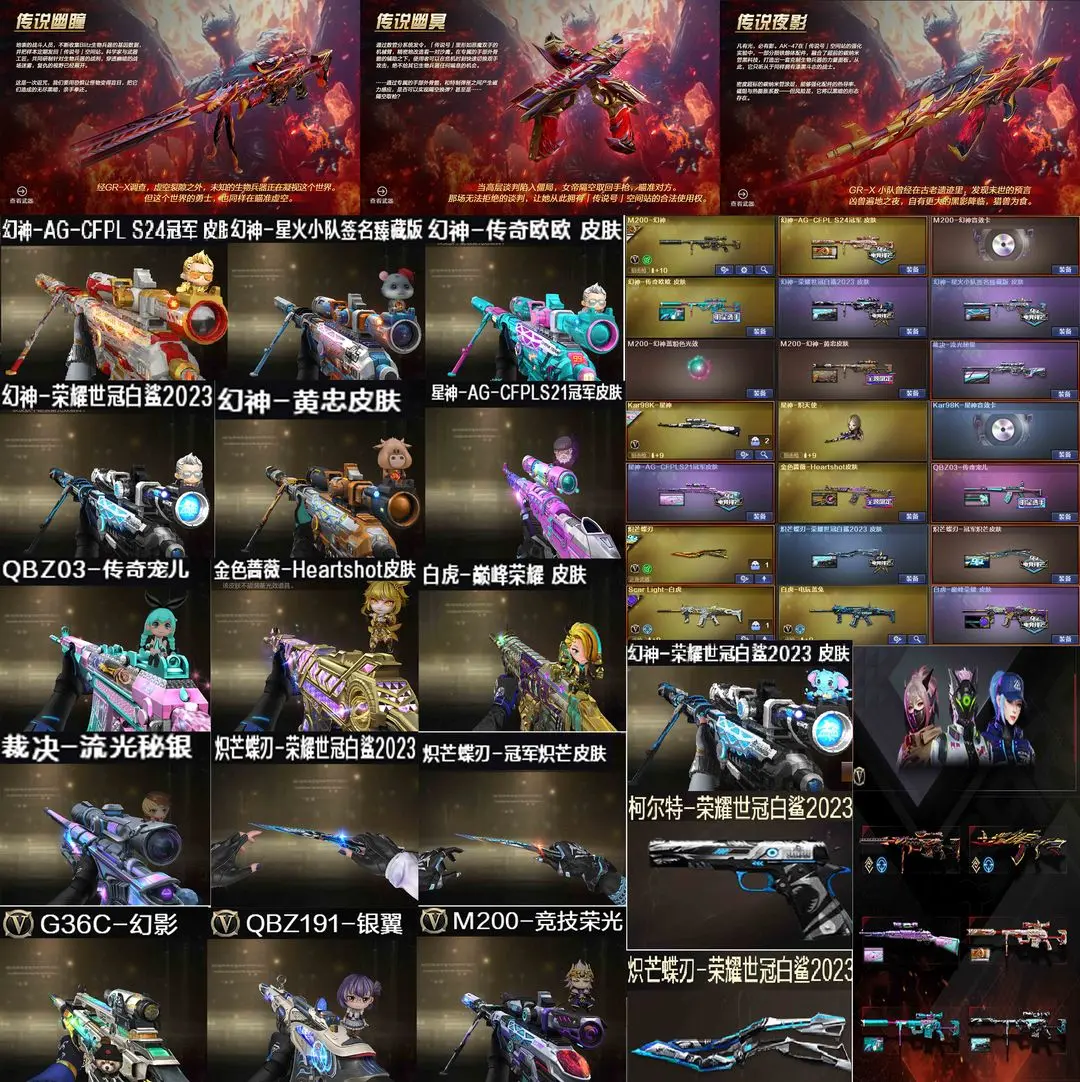 【装备道具】:AGs24幻神白鲨S23全套❤欧欧星火AG星神音效卡❤传说幽瞳幽冥❤幻影蝶刃冠军银翼Qbz宠儿满生化【全主流武器+超多质量皮肤】【传说幽瞳/传说夜影/传说幽冥/m200-幻神三件套(全新agS24冠军皮+传奇欧欧+星火小队幻神+白鲨2023幻神+黄忠幻神皮肤)/kar98k-星神三件套(星神ag21冠军皮)/gbz191-银翼/g36c-幻影/qbz03-金色蔷薇(传奇宠儿+女团QBZ皮)/scarlight-白虎(巅峰荣耀皮)/awm-裁决(流光秘银皮)/王者之决(觉醒)/barrett-毁灭三件套(女团皮+星耀皮+ag冠军皮)/5烈龙+死亡之眼/柯尔特-荣耀世冠白鲨2023/柯尔特-竞技荣光x2/cop雷霆王者(觉醒)/炽芒蝶刃(冠军炽芒+荣耀世冠白鲨2023)/4个四防角色(王者云悠悠/王者岚台儿/王者魅影/王者小乔)/abc背包已开/终极猎手-秦魂将军/机械猎手-幻灵猎姬★爆破生化挑战全装★生化弹夹防化服变异宝贝死亡之眼★佣兵觉醒手斧镜减速雷★捕食者之眼死亡之眼超级对讲机不退包★超级背包无需换弹查看血量★