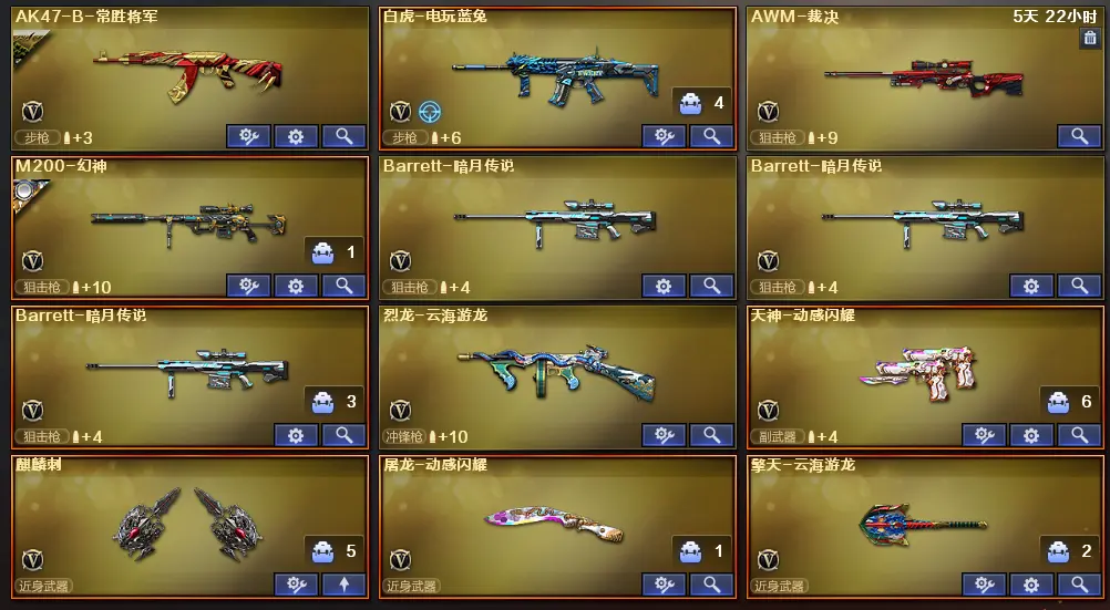 本游戏账号:英雄武器18个; 王者武器3个。 装备不多,但是主武器、副武器、近身武器够用 拥有完美游戏体验。重要的是,特殊装备有:黑骑士-海王、麒麟刺、AK47-火麒麟、M200-幻神、堕天使、生化弹匣、等,随意畅选。