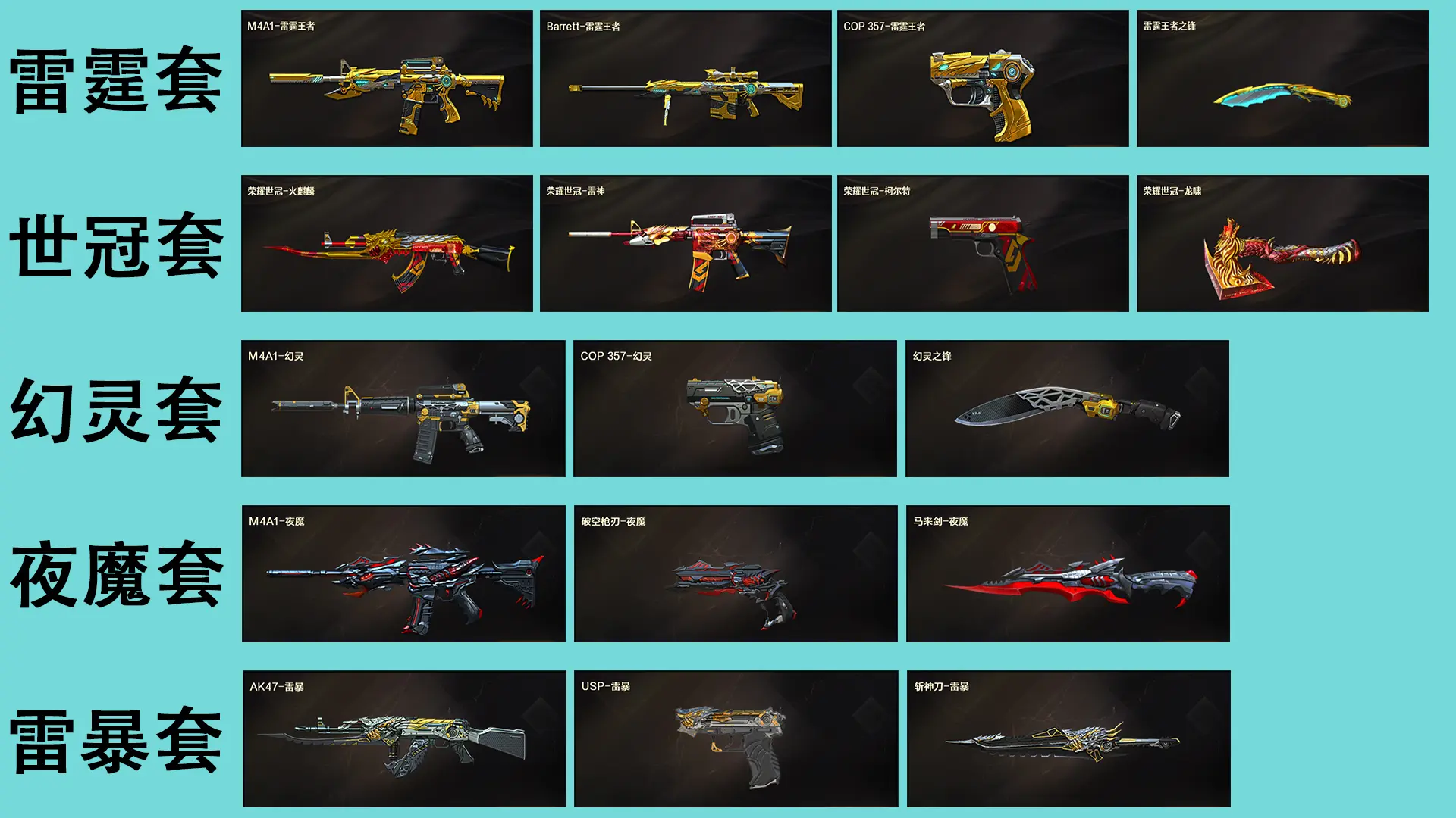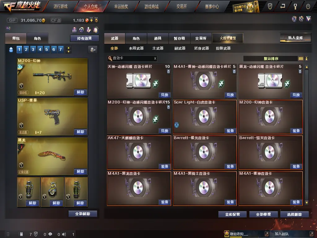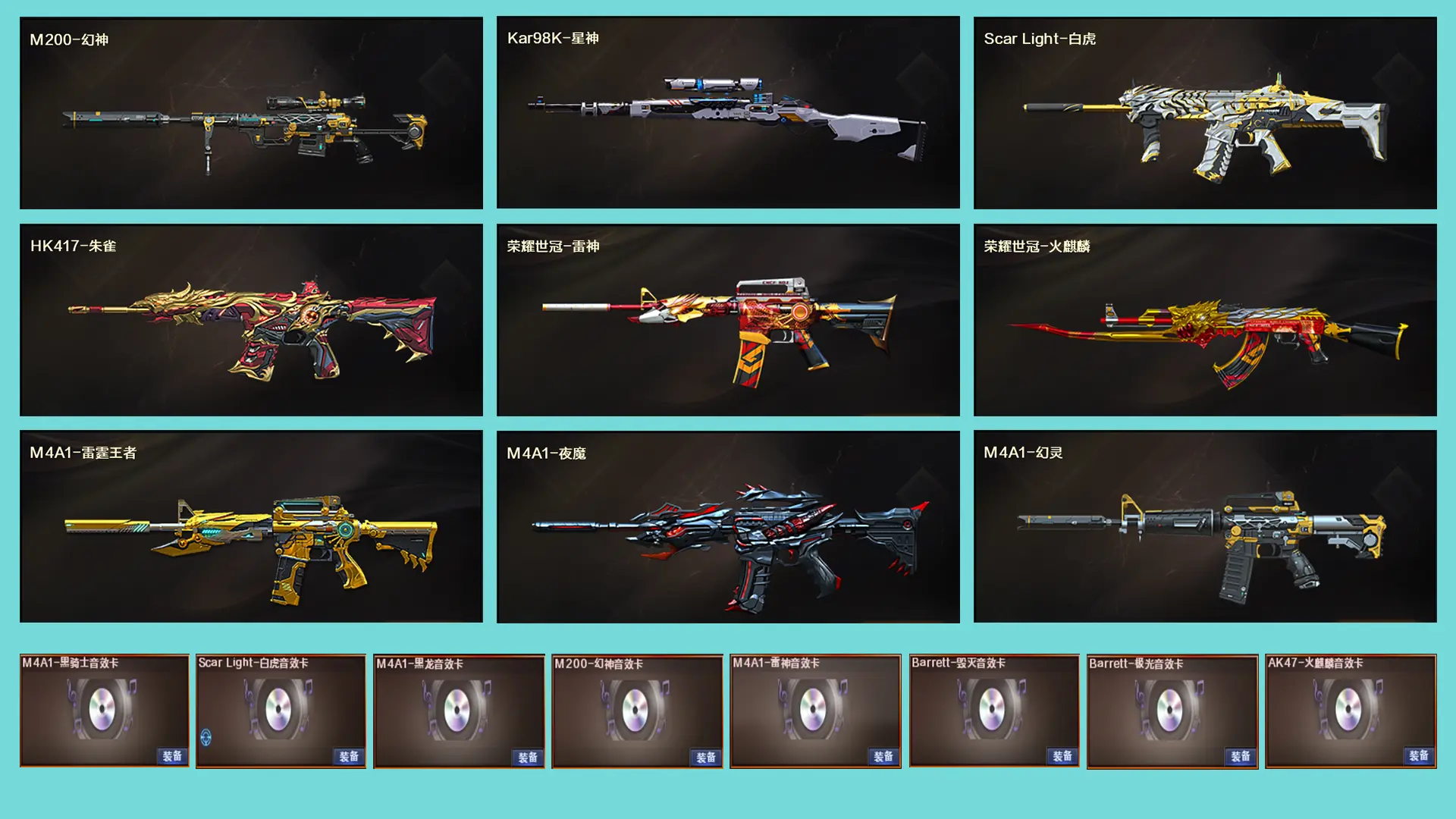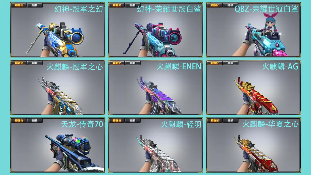 幻神荣耀世冠白鲨,QBZ03荣耀世冠白鲨,M200幻神,幻神音效卡,白虎音效卡,极光音效卡,黑龙音效卡,火麒麟音效卡,毁灭音效卡,黑骑士音效卡,雷神音效卡,星神,白虎,朱雀,夜魔套装,荣耀世冠套装,雷暴套装,幻灵套装,雷霆王者套装,火麒麟华夏之心,火麒麟轻羽,火麒麟AG,火麒麟EVEN,火麒麟冠军之心,雷神虎将,雷神白鲨,雷神冠军之魄,雷神荣耀之魄,毁灭SV,毁灭冠军之怒,毁灭荣耀之怒,幻神冠军之幻,屠龙荣耀之锋,屠龙荣耀世冠,6烈龙,斯太尔蝴蝶,斯泰尔蝴蝶,佣兵觉醒捕食者之眼生化四防,王者之锋-觉醒版;王者之魄-觉醒版;雷霆王者-觉醒版;王者之武-觉醒版;COP 357-雷霆王者-觉醒版;王者之击-觉醒版;王者之翼-觉醒版;王者之心-觉醒版;M4A1-雷霆王者-觉醒版;炼狱-悦蓝,炫金天龙,炫金雷神;炫金骑士;雷霆王者之锋-觉醒版;雷霆王者之锋;USP-雷暴;M200-幻神;QBZ03-金色蔷薇;Kar98K-星神;AK47-雷暴;斩神刀-雷暴;荣耀世冠-火麒麟;荣耀世冠-雷神;荣耀世冠-柯尔特;宗师,大师,传奇,枪王,荣耀枪王,荣耀之巅,生化爆破双全装,冠军幻神,北部等等等