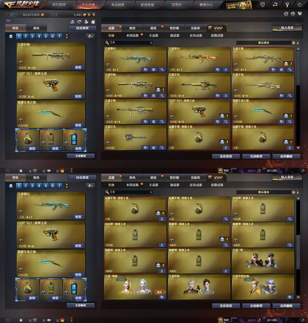 【装备道具】:m200-幻神+幻神音效卡★觉醒王者幻神★m200-竞技荣光套装+云悠悠★柯尔特-竞技荣光★COP雷霆王者★雷霆王者之锋★关小雨★王者魅影★王者沙漠玫瑰★王者玲珑★王者炎心★王者之光★黑骑士音效卡★火麒麟音效卡★幻神音效卡★qbz音效卡★毁灭音效卡★雷神音效卡 ★《雷神-荣耀之魄、雷神-虎将、雷神-白鲨14冠军》《毁灭-cfs2018、毁灭-sv16冠军》★毁灭耀金★火麒麟AG战队★电玩兔兔击杀图标 王者刀锋玩偶★可排位★M200-幻神,M200-竞技荣光,王者幻神,★MAC-10-涂鸦