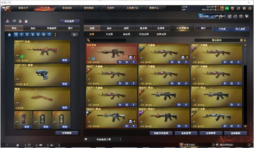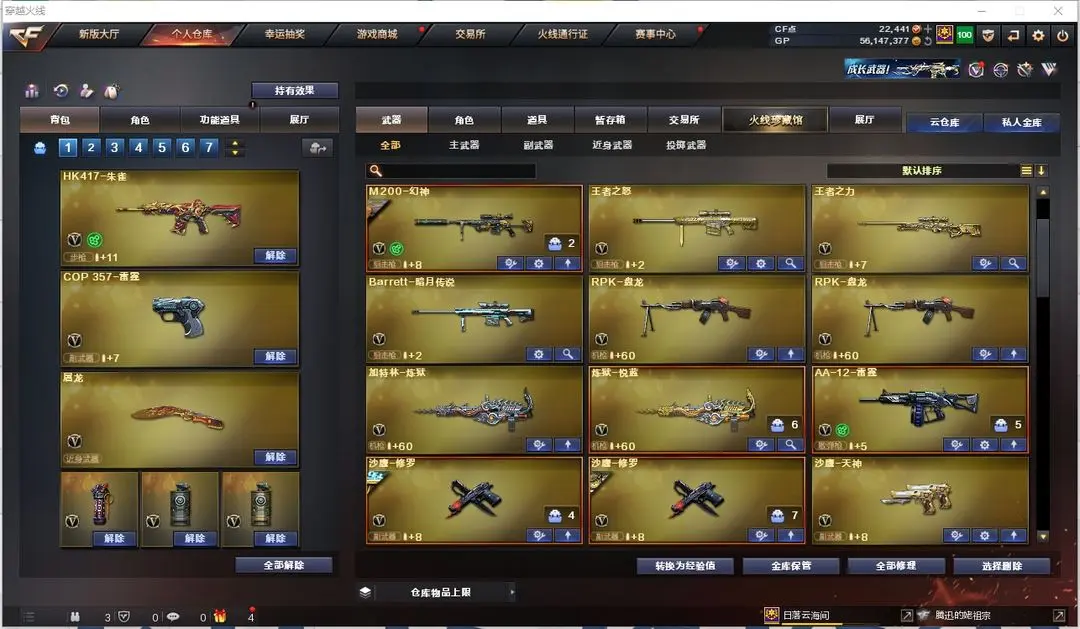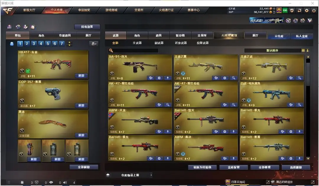 本游戏账号:英雄武器94个; 王者武器16个。 装备不多,但是主武器、副武器、近身武器够用 拥有完美游戏体验。重要的是,特殊装备有:麒麟刺、M200-幻神、加特林-炼狱、传说暗裔、AK47-火麒麟、龙啸-堕天神、HK417-朱雀、炫金雷神、炫金毁灭、炫金骑士、王者之翼-觉醒版、王者之武-觉醒版、王者之怒-觉醒版、王者之力-觉醒版、炼狱-悦蓝-觉醒版、迷迭香、M4A1-黑骑士音效卡、炼狱-悦蓝金色光效、等,随意畅选。