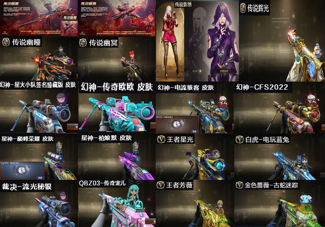 【装备道具】:【北部极品号+4传说+幻神三件套+星神三件套/QBZ金色蔷薇三件套】传说影煞/传说幽瞳/幻神三件套/幻神/幻神音效卡/幻神星火小队/幻神传奇欧欧/幻神CFS2022/幻神电流骇客/传说辉光/传说幽冥/星神三件套/星神/星神音效卡/星神枪娘默/星神巅峰荣耀/G36幻影/冠军之刃/QBZ金色蔷薇三件套/QBZ金色蔷薇/金色蔷薇音效卡/QBZ传奇宠儿/白虎电玩蓝兔/王者芳薇/迷你泡泡象/幻灵手雷套/雷霆手雷套/USP-铃狮送福/USP-精灵【角色】/传说影煞/关小雨/葵/奇洋探员/蛇隐宗/瞳/王者救世主/王者零/隼/【音效卡】/火麒麟音效卡/黑骑士音效卡/金色蔷薇热带奇洋音效卡/毁灭音效卡/雷神音效卡/【皮肤】/火麒麟枪娘凯萨林/火麒麟白虎/雷神朋克/雷神CFPLS18冠军/雷神宇航兔/黑龙冠军之武/裁决流光秘银/屠龙破浪逐光/白虎大汉风骨/黑鲨电流骇客/擎天冠军之击/传奇石头横秒之巅/黑骑士冠军之势/白虎暗星/毁灭孙三炮/天龙曼陀罗/斯泰尔枪娘暗刃/朱雀蛇隐宗/雷神精英刀锋/CAT刀锋/CAT/牛牛/