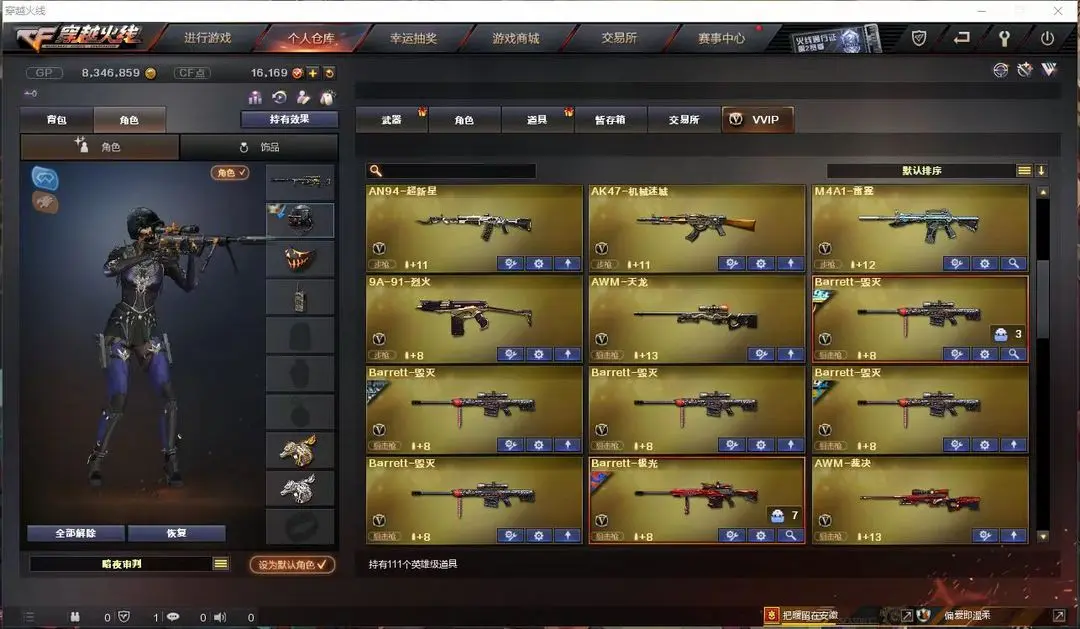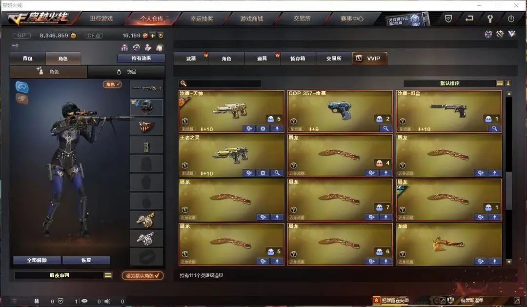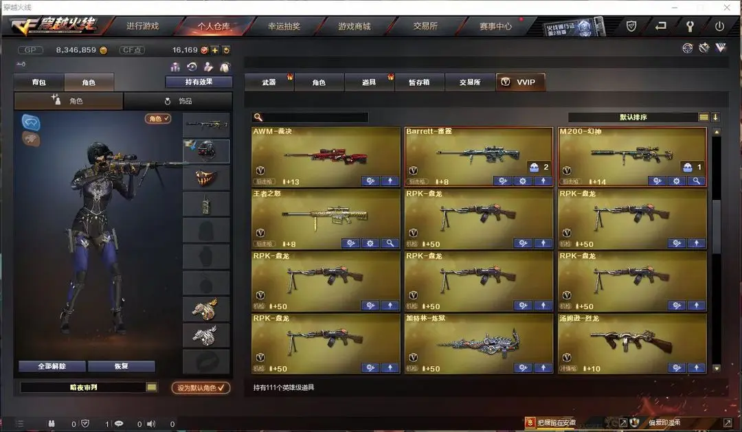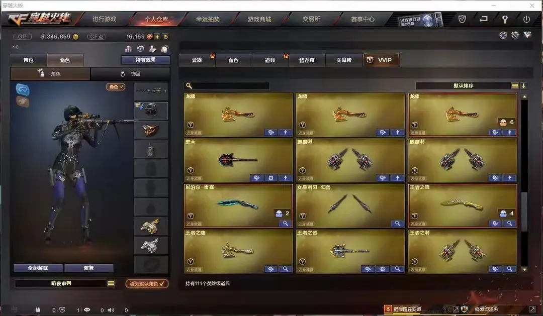本游戏账号:英雄武器100个; 王者武器15个。 装备不多,但是主武器、副武器、近身武器够用 拥有完美游戏体验。重要的是,特殊装备有:麒麟刺、M200-幻神、加特林-炼狱、AK47-火麒麟、王者之魄、王者之怒-觉醒版、王者之锋-觉醒版、王者之怒、王者之幻、王者之影、王者之势、王者之力、王者之武、堕天使、王者之啸金色光效、M4A1-黑骑士音效卡、王者之魄金色光效、等,随意畅选。