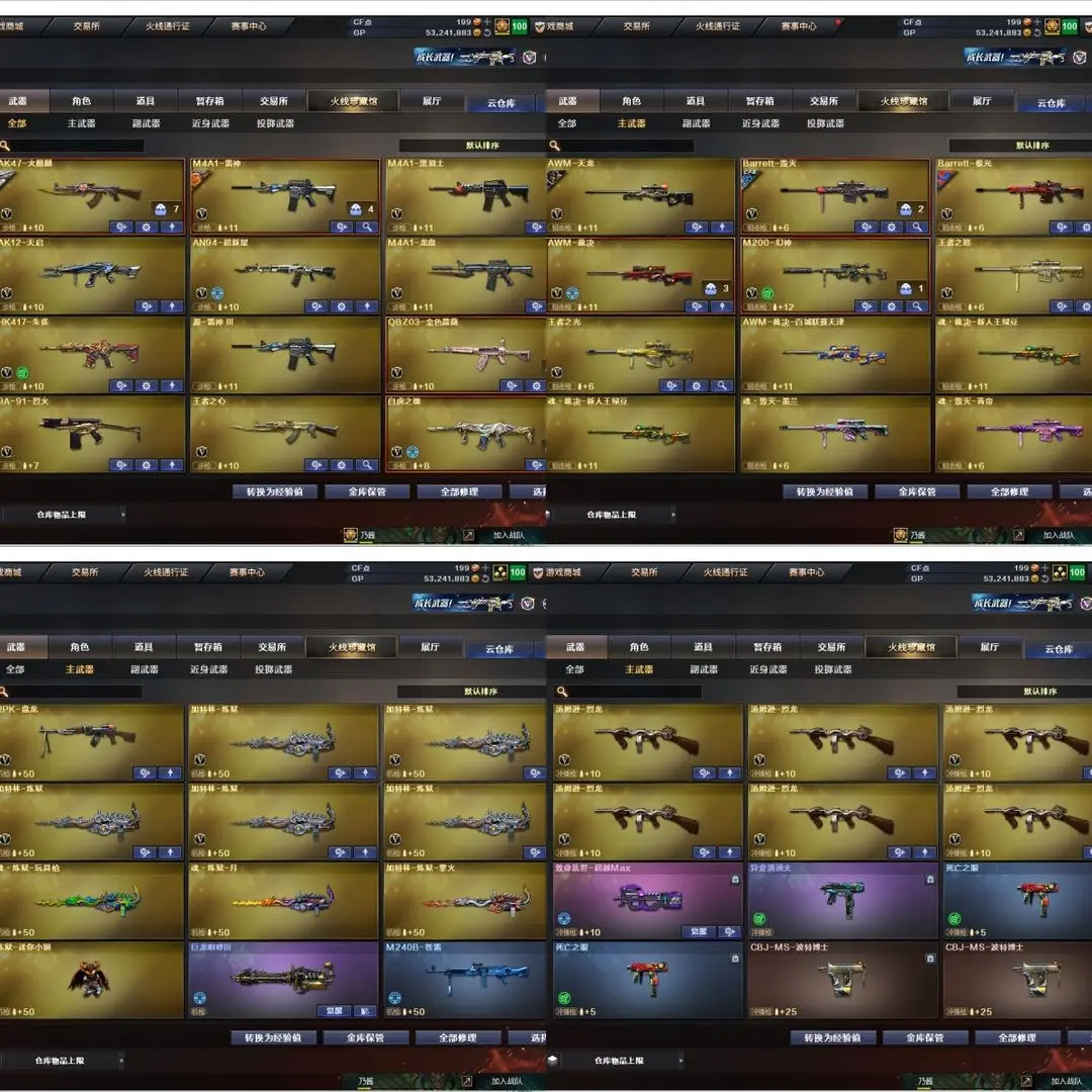本游戏账号:英雄武器60个; 王者武器9个。 装备不多,但是主武器、副武器、近身武器够用 拥有完美游戏体验。重要的是,特殊装备有:加特林-炼狱、M200-幻神、AK47-火麒麟、HK417-朱雀、王者之影、王者之戮、王者之怒-觉醒版、王者之心-觉醒版、王者之光-觉醒版、火麒麟-绝迹、魅影、雪莉杨、堕天使、M4A1-黑骑士音效卡、生化弹匣、王者之啸金色光效、王者之心金色光效、等,随意畅选。