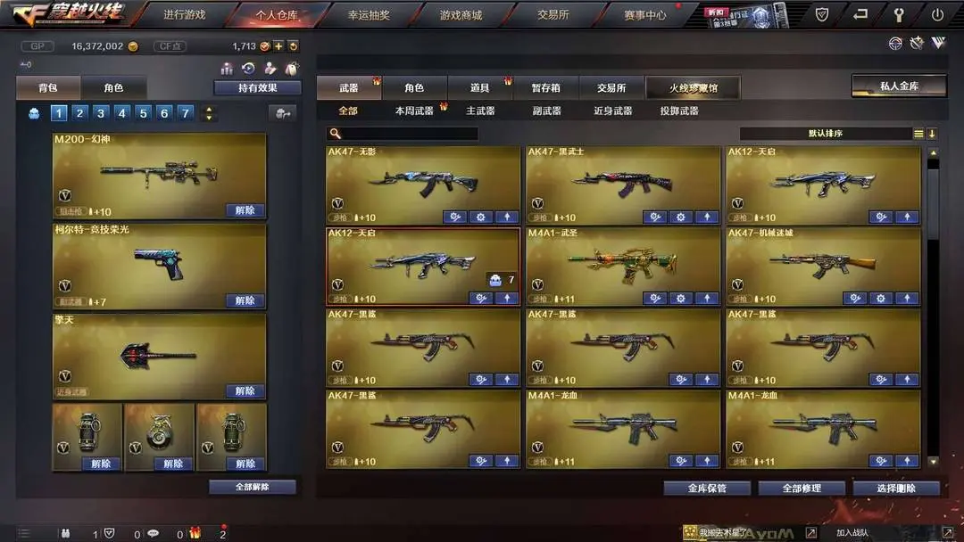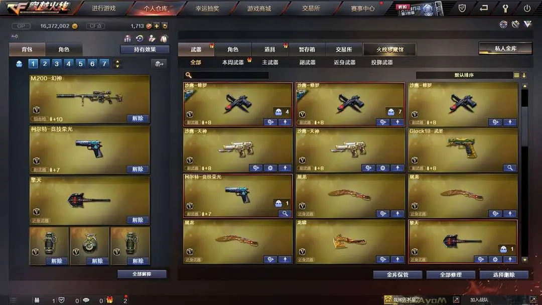 本游戏账号:英雄武器86个; 王者武器12个。 装备不多,但是主武器、副武器、近身武器够用 拥有完美游戏体验。重要的是,特殊装备有:龙啸-堕天神、黑骑士-海王、擎天-竞技荣光、AK47-火麒麟、闪光弹-竞技荣光、烟雾弹-竞技荣光、M200-幻神、麒麟刺、王者之翼-觉醒版、炫金天龙、王者之影、王者之锋-觉醒版、炫金武士、王者之魄-觉醒版、炫金毁灭、魅影、炽天使、王者涂鸦、雪莉杨、堕天使、王者之魄金色光效、王者之心金色光效、王者之啸金色光效、等,随意畅选。