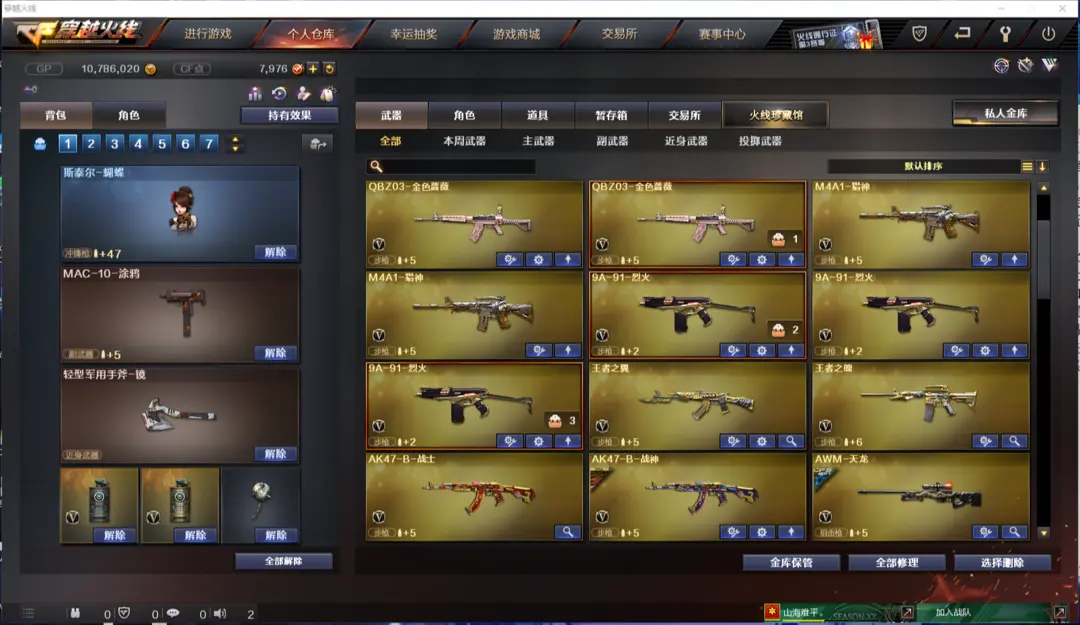 本游戏账号:英雄武器103个; 王者武器27个。 装备不多,但是主武器、副武器、近身武器够用 拥有完美游戏体验。重要的是,特殊装备有:AK47-火麒麟、龙啸-堕天神、M200-幻神、加特林-炼狱、炫金毁灭、炫金骑士、炫金天龙、王者之心-觉醒版、炫金雷神、王者之锋、王者之鲨、王者之怒、炫金武士、王者之幻、王者之力-觉醒版、王者之武-觉醒版、王者之翼、王者之戮、炼狱-悦蓝、堕天使、王者之啸金色光效、M4A1-黑骑士音效卡、等,随意畅选。