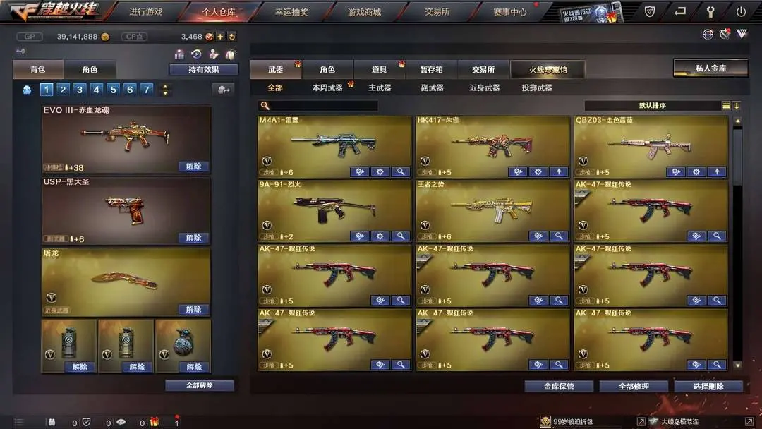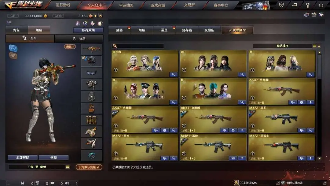 本游戏账号:英雄武器123个; 王者武器27个。 装备不多,但是主武器、副武器、近身武器够用 拥有完美游戏体验。重要的是,特殊装备有:麒麟刺、HK417-朱雀、AK47-火麒麟、M200-幻神、王者之势-觉醒版、王者之幻、王者之怒-觉醒版、王者之怒、王者之势、炫金雷神、王者之锋、炫金毁灭、炼狱-悦蓝、王者之魄、王者之魂、炫金黑龙、王者之心、玫瑰精灵-悦动、火麒麟-暗月、火麒麟-绝迹、王者王力宏、王者-葵-貂蝉、雪莉杨、堕天使、生化弹匣、王者之啸金色光效、王者之心金色光效、M4A1-黑骑士音效卡、王者之魄金色光效、炼狱-悦蓝金色光效、等,随意畅选。