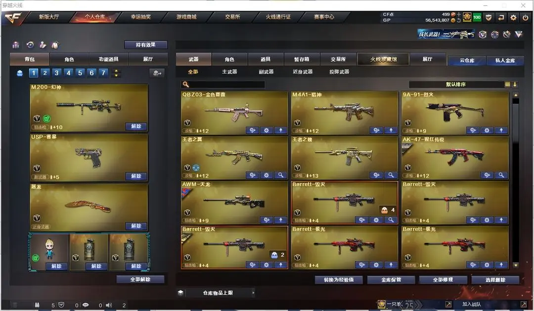 本游戏账号:英雄武器116个; 王者武器11个。 装备不多,但是主武器、副武器、近身武器够用 拥有完美游戏体验。重要的是,特殊装备有:加特林-炼狱、麒麟刺、M200-幻神、USP-雷暴、HK417-朱雀、AK47-火麒麟、炫金毁灭、炫金天龙、炫金火麒麟、王者之翼-觉醒版、王者之魄-觉醒版、王者之锋-觉醒版、王者之光-觉醒版、火麒麟-灵狐、迷迭香、魅影、炽天使、雪莉杨、王者-瞳-闭月羞花、王者玲珑、堕天使、王者之魄金色光效、生化弹匣、等,随意畅选。
