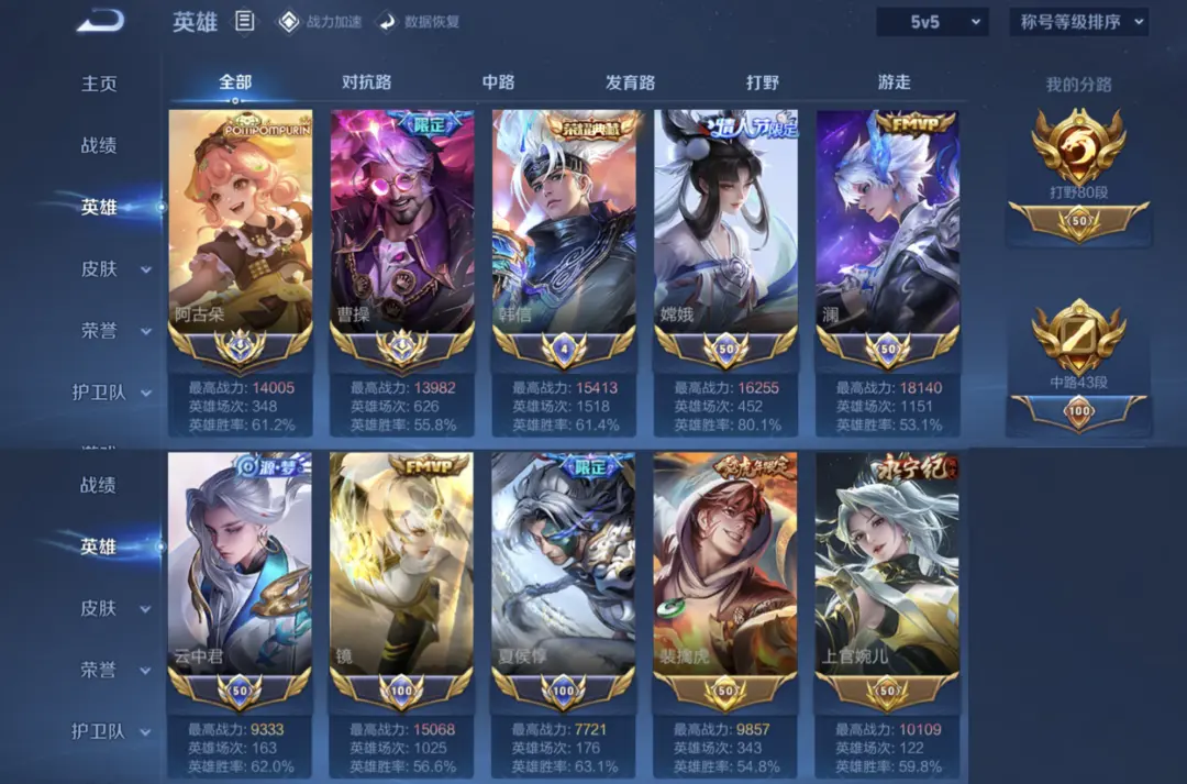 【打野80段】⚡2大国6小国⚡大国曹操⚡小国澜/国服镜⚡澜蛇年限定⚡恨离烟⚡霜北刀⚡龙年套⚡逐梦花海