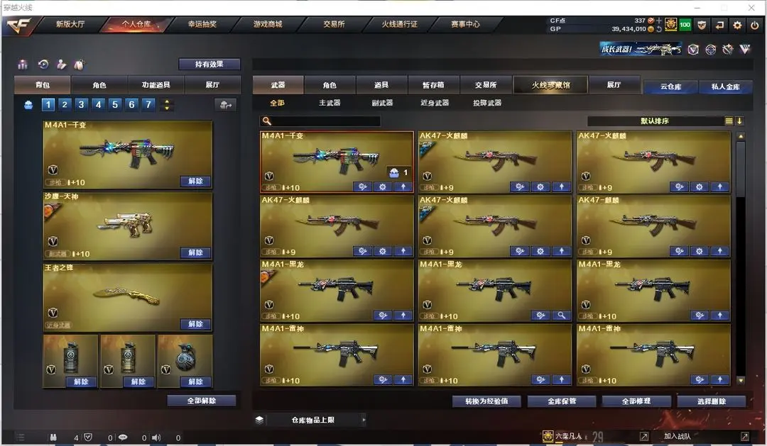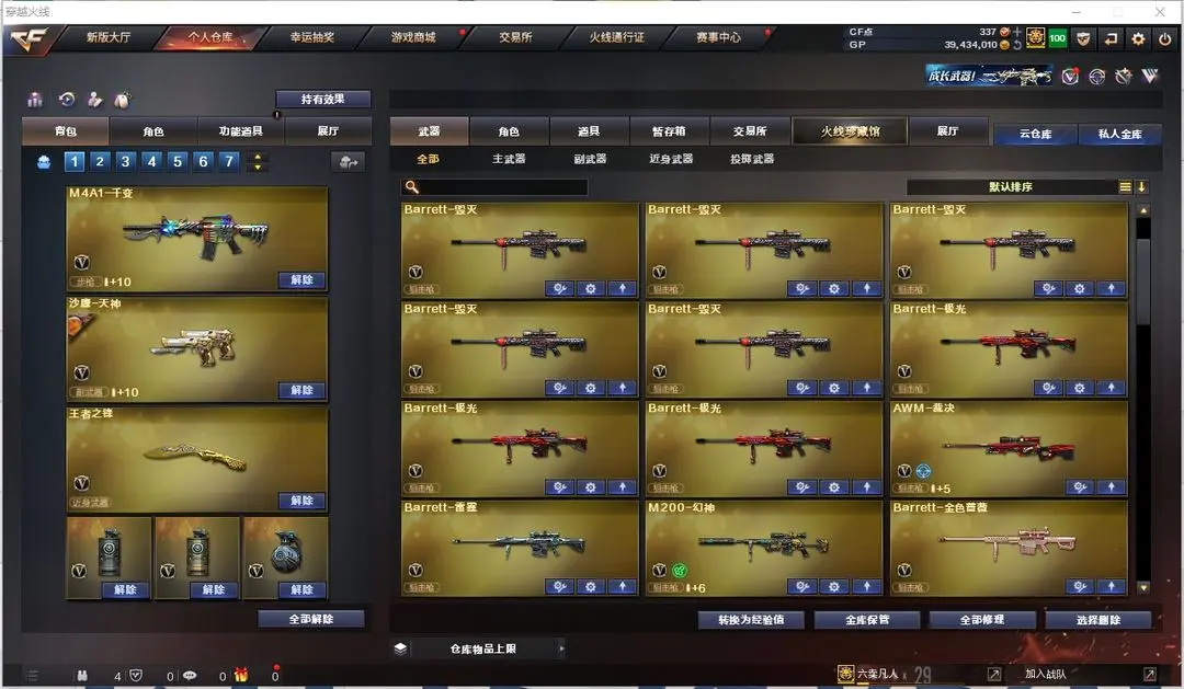 本游戏账号:英雄武器146个; 王者武器29个。 装备不多,但是主武器、副武器、近身武器够用 拥有完美游戏体验。重要的是,特殊装备有:麒麟刺、M200-幻神、M4A1-玫瑰精灵、加特林-炼狱、AK47-火麒麟、王者之幻、炫金黑龙、炫金天龙、炫金毁灭、王者之刺、王者之啸、王者之魂、王者之影、炫金雷神、炫金骑士、王者之心、王者之武、炼狱-悦蓝、王者之怒-觉醒版、王者之光、王者之锋-觉醒版、火麒麟-暗月、王者之瞳、堕天使、王者之心金色光效、王者之啸金色光效、生化弹匣、等,随意畅选。
