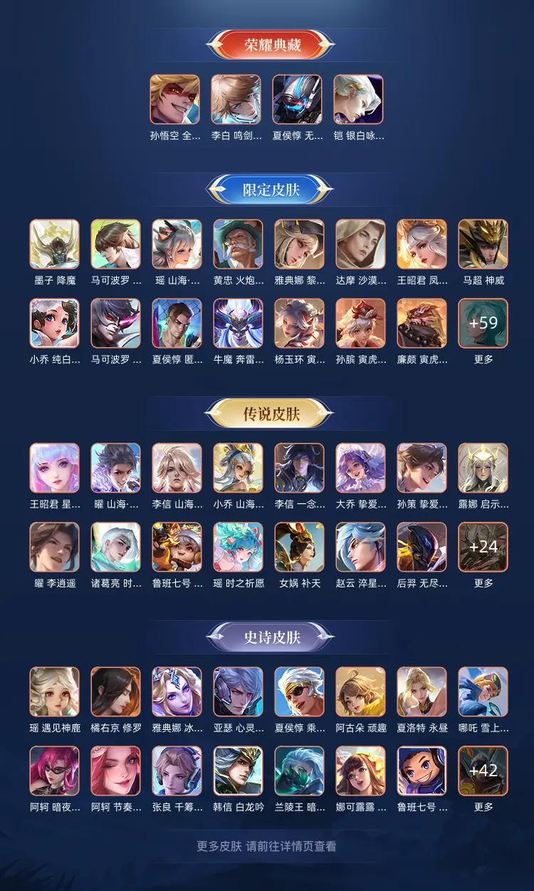 本游戏账号: V10用户,基础段位:永恒钻石II,英雄多,皮肤多。典藏皮肤3个,感受典藏皮肤带来的优质体验快感,FMVP皮肤8个,尽情享受FMVP皮肤带来的主角光环, 私人所属英雄皮肤有:夏侯惇 无限飓风号||李白 鸣剑·曳影||孙悟空 全息碎影诸葛亮 时雨天司||诸葛亮 武陵仙君||大乔 挚爱花嫁||铠 绛天战甲||百里守约 碎云||梦奇 胖达荣荣||孙尚香 异界灵契||孙尚香 音你闪耀||孙尚香 末日机甲||鲁班七号 寅虎·瑞焰||孙策 末日机甲||孙策 挚爱之约||上官婉儿 神器·万象笔||周瑜 音你心动||曜 山海·苍雷引||曜 李逍遥||宫本武藏 地狱之眼||马可波罗 深海之息||狄仁杰 神器·狴犴令||狄仁杰 超时空战士||达摩 黄金狮子座||武则天 海洋之心||桑启 鸣野蒿||貂蝉 仲夏夜之梦||露娜 启示之音||王昭君 星穹之声||王昭君 乞巧织情||艾琳 觅芳踪||张良 黄金白羊座||不知火舞 绯月行||孙悟空 地狱火||孙悟空 零号·赤焰||后羿 无尽星芒||