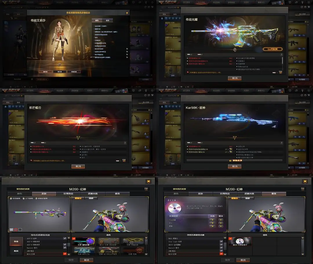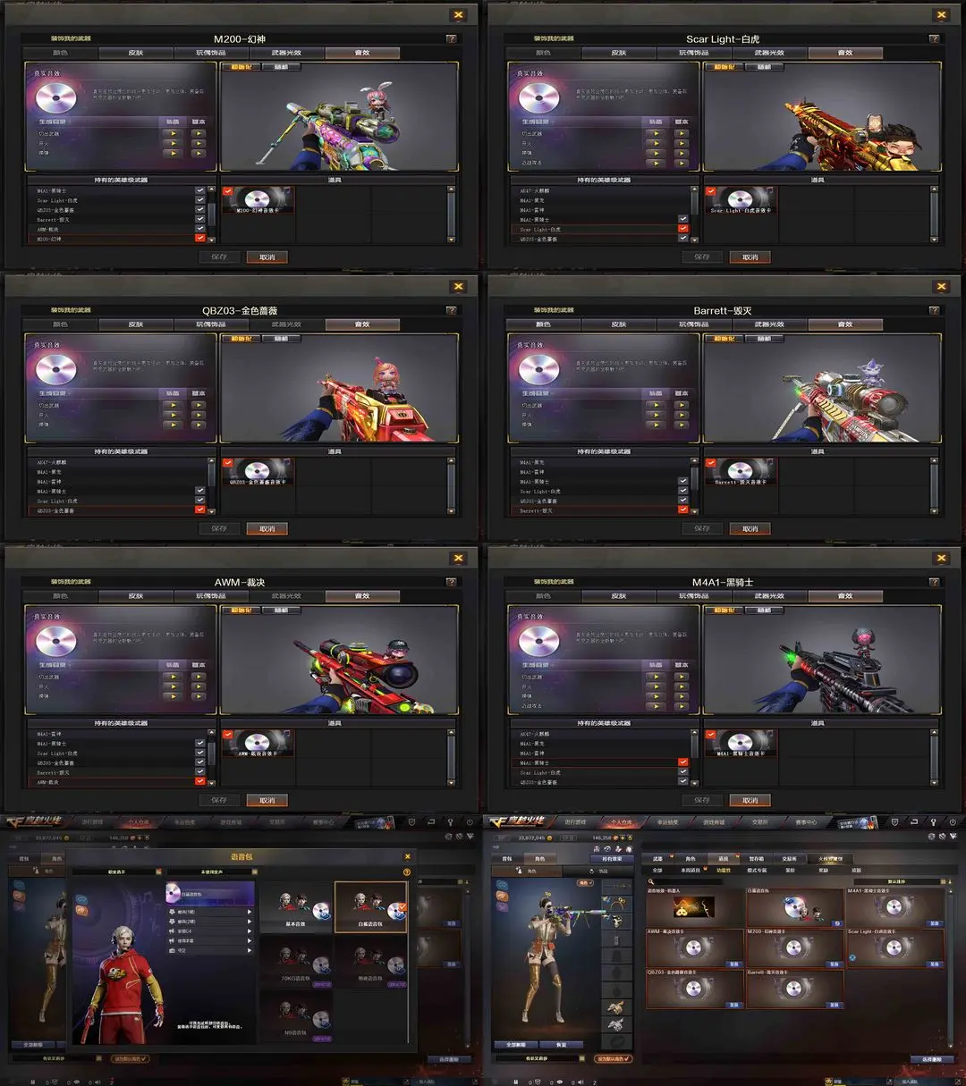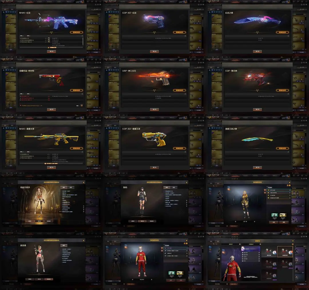 【装备道具】:幻神+荣耀巅峰皮肤+音效卡/星神/传说光耀/白虎+大汉风骨皮肤+音效卡/金色蔷薇qbz+呛娘皮肤+音效卡/qbz天罚/6烈/蝴蝶/m4朱雀/m4幻灵/m4青龙/黑骑士海王/白虎电玩蓝兔/6盘/cop幻灵/cop堕天神/破空呛刃夜魔/cop幻灵/usp神工天巧/cop雷霆王者/世冠柯尔特/迷你小刚/(角色+4防传说爱丽莎+迷迭香+4防影豹+4防王者春+3防潘多拉甜心教官+3防职业选手+白鲨音效卡)(幻神+荣耀巅峰皮肤+音效卡)(白虎+大汉风骨皮肤+音效卡)(金色蔷薇qbz+呛娘皮肤+音效卡)(火麒麟+ag+star+横秒之巅+雷神+大唐荣光皮肤)(雷神+虎将+荣耀之魄皮肤)(毁灭+s16冠军+墨兰皮肤+音效卡)(裁决音效卡)猫猫拳/雷霆王者/王者之戮/王者之武/3套夜魔雷/1套雷暴雷/2套神工天巧雷/m4千变/火麒麟/黑龙/雷神/黑骑士/ak12天启/无影/9a91烈火/毁灭/裁决/暗月传说/炼狱/修罗/天神/屠龙/龙啸/麒麟刺/斩神刀雷暴/马来剑夜魔/炽芒碟刃/雷霆王者之锋/(生化+永久钩子+永久变异宝贝+永久防化服)★佣兵觉醒无需换弹手斧镜减速雷★捕食者之眼查看血量★