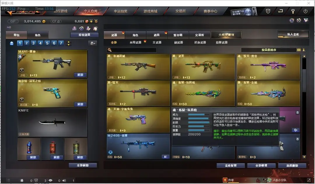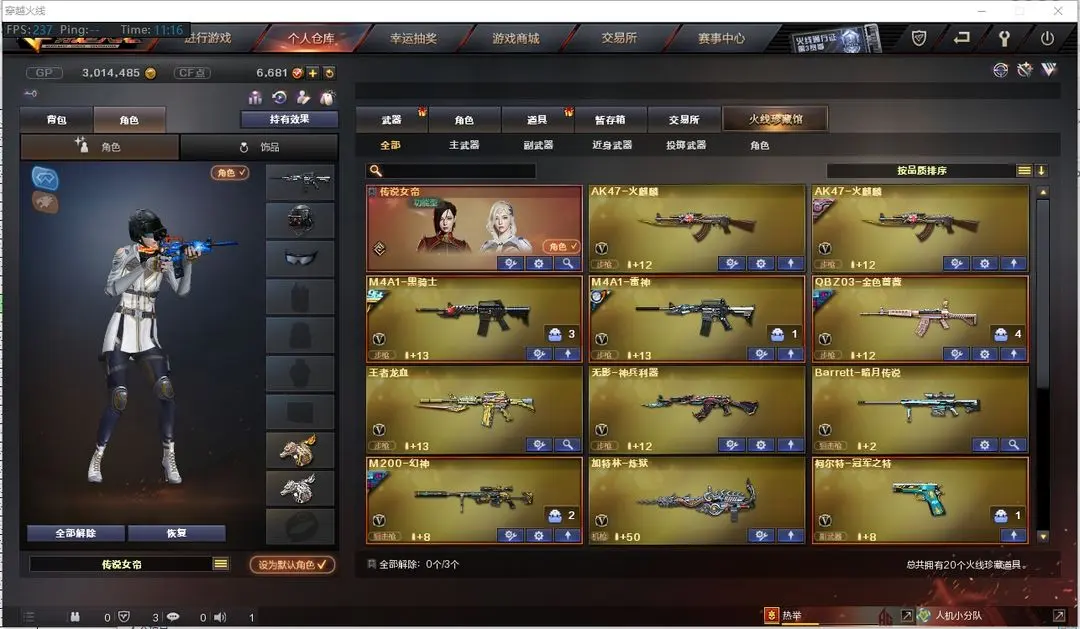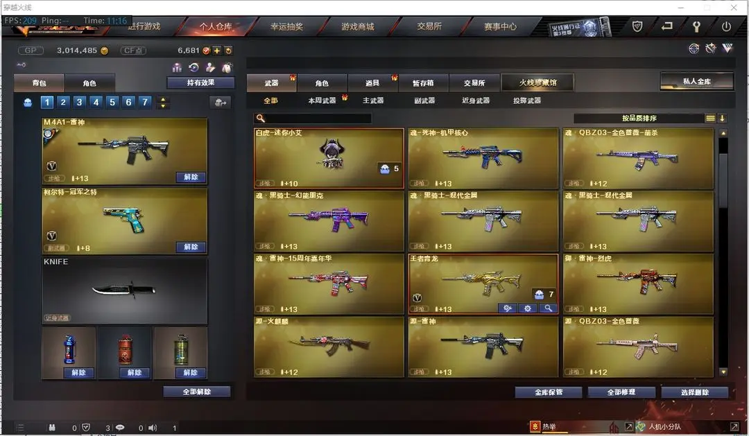本游戏账号:英雄武器17个; 王者武器2个。 装备不多,但是主武器、副武器、近身武器够用 拥有完美游戏体验。重要的是,特殊装备有:AK47-火麒麟、加特林-炼狱、M200-幻神、传说女帝、堕天使、M4A1-黑骑士音效卡、等,随意畅选。