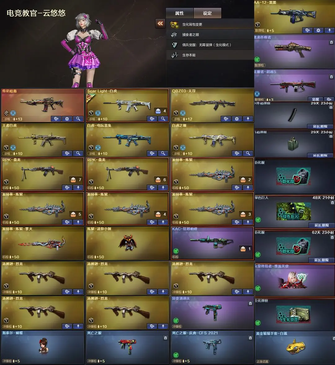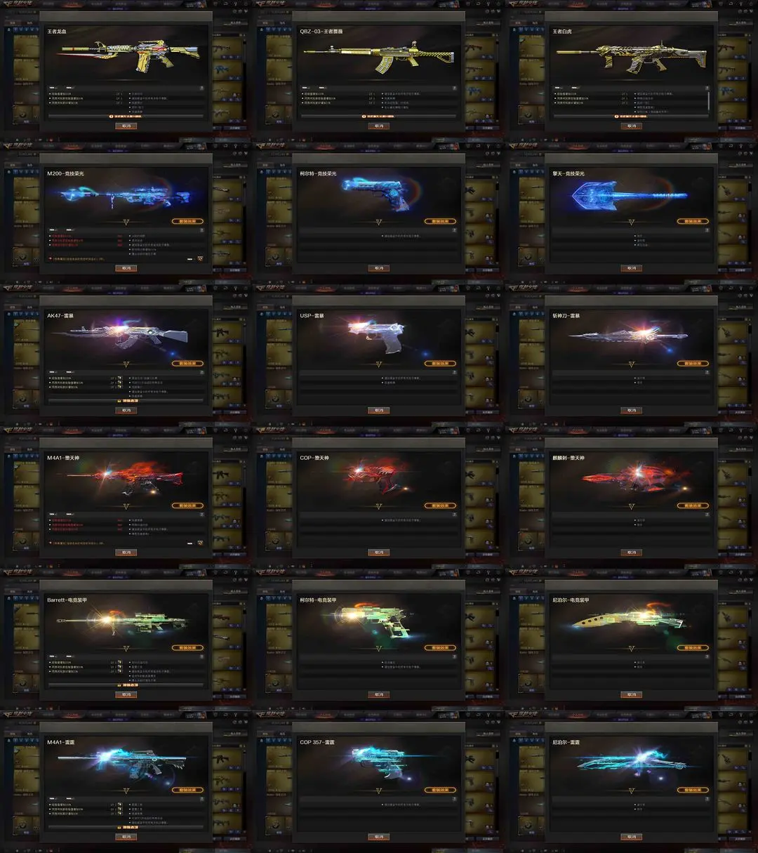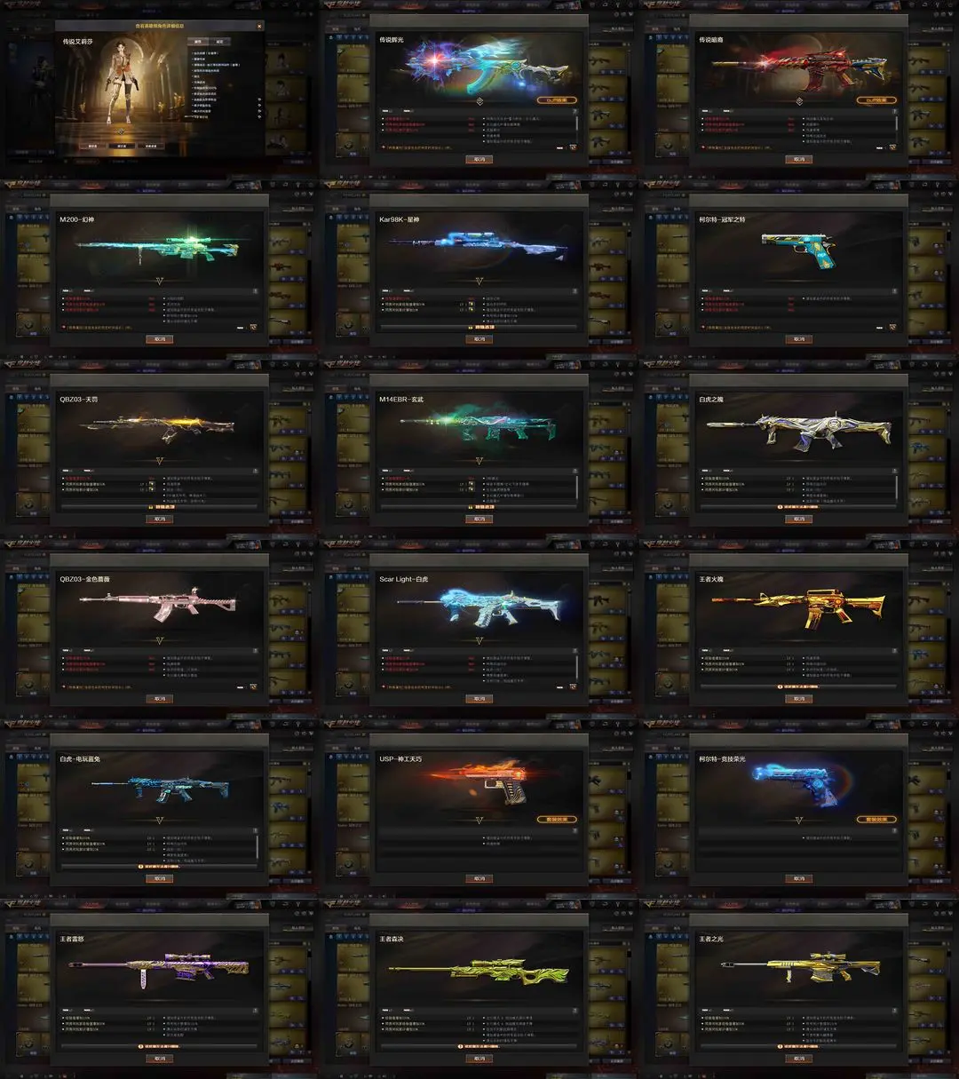【装备道具】:【传说艾莉莎+传说辉光+传说夜影】【m200-幻神+幻神-荣耀世冠白鲨+幻神-cfs-2022+幻神音效卡+冠军之特*2+冠军之刃*2】【m200-竞技荣光+柯尔特-竞技荣光擎天+竞技荣光手蕾套】【98k星神】【qbz金色蔷薇+冠军之薇★qbz-荣耀世冠白鲨★qbz-ag19冠军★qbz王者蔷薇★qbz-天罚】【scar白虎+白虎-ag20冠军+白虎音效卡+白虎-电玩蓝兔+白虎之魄+王者白虎+玄武】【ak47-雷暴+usp雷暴】【m4a1-堕天神+cop-堕天神+堕天神年套】【m4a1-雷霆+cop-雷霆+雷霆手雷套】【barrett-电竞装甲+柯尔特-电竞装甲】【雷神+雷神-斗鱼平台+雷神-宠儿+雷神-白鲨14冠军+雷神-荣耀之魄+雷神-cfs2019】【火麒麟+火麒麟-斗鱼平台+传奇even+冠军之心】【黑骑士-冠军之势+黑骑士音效卡】【黑龙+黑龙-冠军之武+黑龙-墨子】【麒麟刺+麒麟刺-斗鱼平台+麒麟刺-荣耀世冠白鲨】AG冠军之怒冠军之击荣耀之锋usp-神工天巧❤4防云悠悠王者貂蝉迷迭香王者凌霄新海豹突击队 鹰 炫 魅影迷你小刚斯泰尔-蝴蝶异变清道夫6烈龙6盘龙炼狱