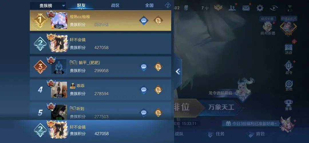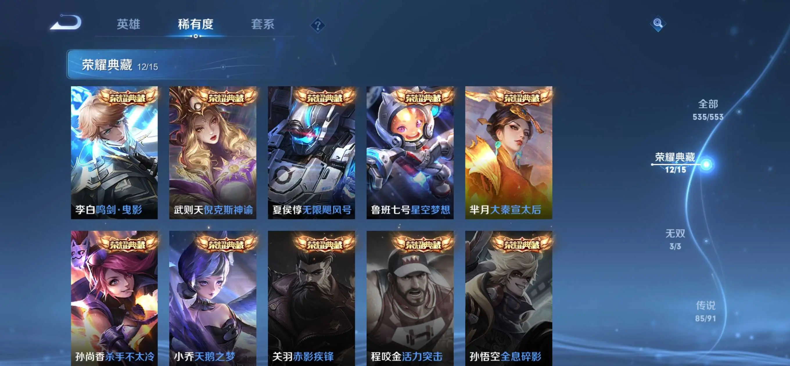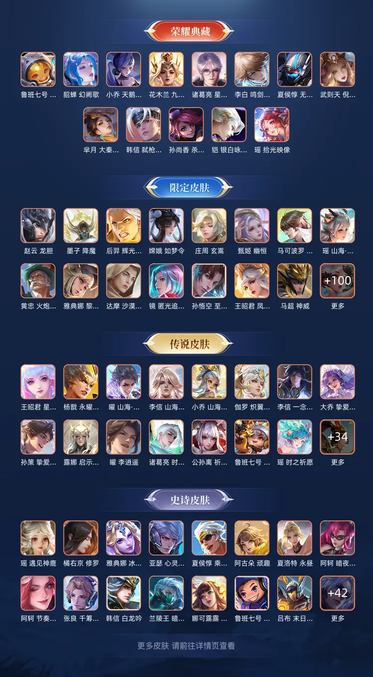 本游戏账号: V10无双贵族用户,基础段位:至尊星耀V,英雄多,皮肤多。典藏皮肤12个,感受典藏皮肤带来的优质体验快感,FMVP皮肤9个,尽情享受FMVP皮肤带来的主角光环, 私人所属英雄皮肤有:韩信 弑枪猎影||鲁班七号 星空梦想||铠 银白咏叹调||貂蝉 幻阙歌||夏侯惇 无限飓风号||花木兰 九霄神辉||诸葛亮 星域神启||芈月 大秦宣太后||李白 鸣剑·曳影||孙尚香 杀手不太冷||武则天 倪克斯神谕||小乔 天鹅之梦,等等