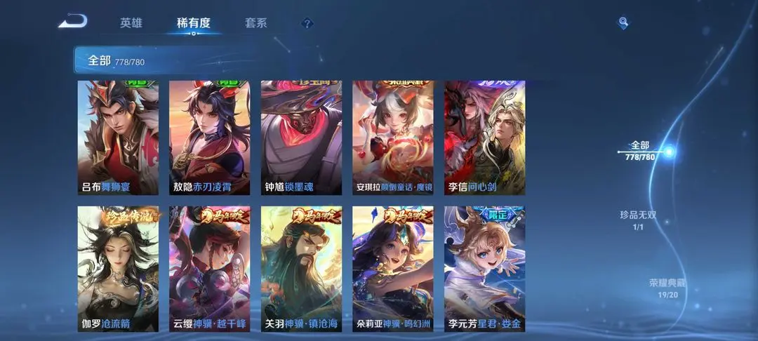 李信无双✨历史国服猴 国服阿轲✨安琪拉典藏✨伽罗珍品✨马年情人节全套✨无相