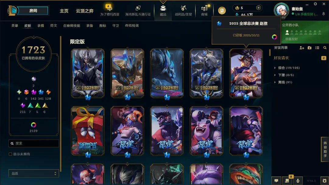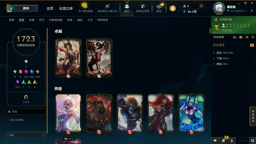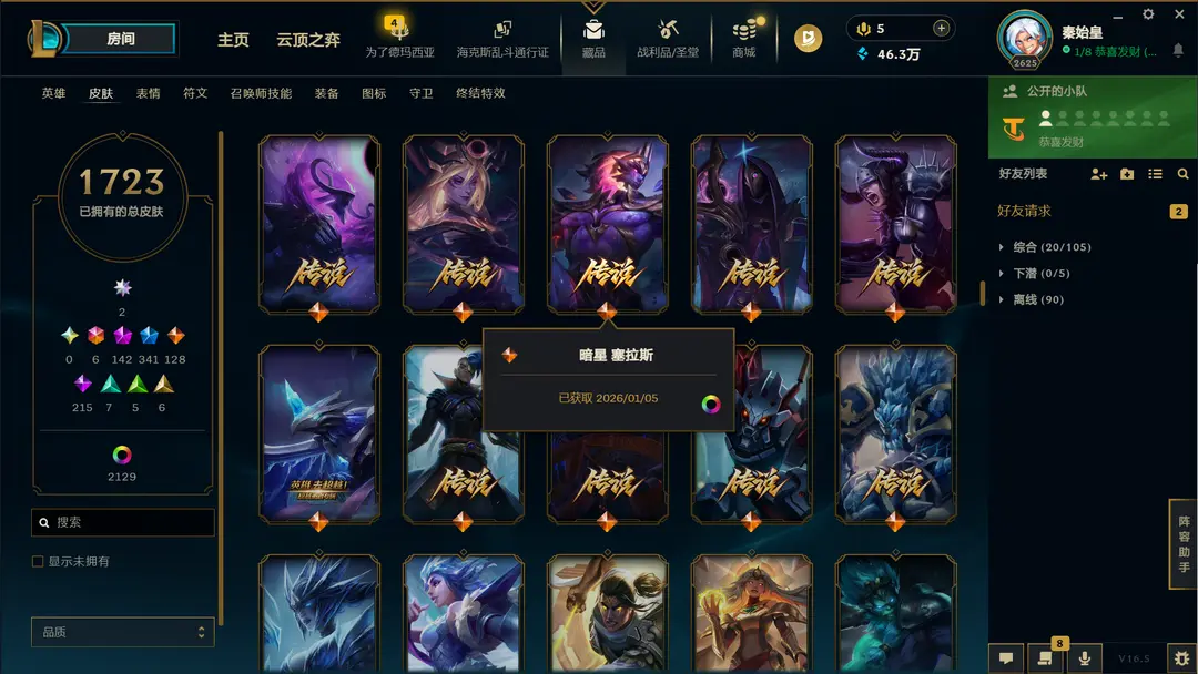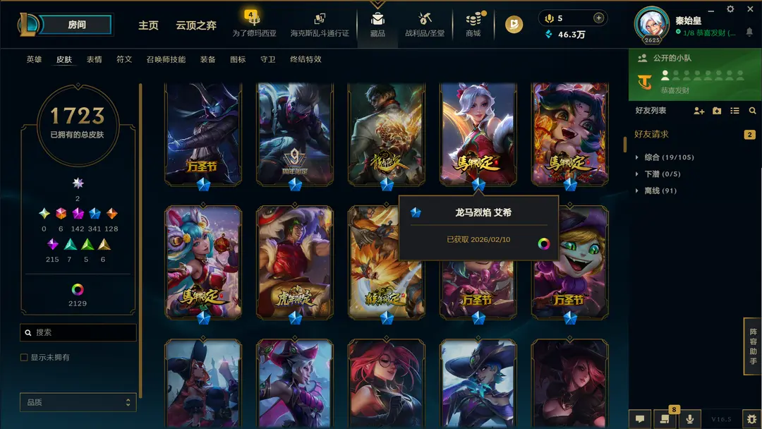| 角色: 秦始皇#78327 | 等级: 2653级 流光翡翠IV |