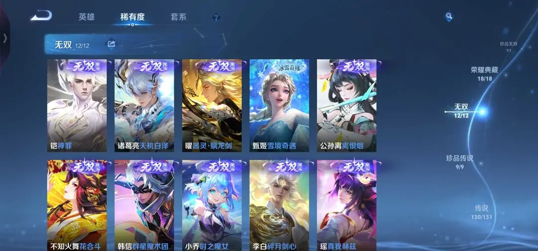 本游戏账号: V10无双贵族用户,基础段位:最强王者,英雄多,皮肤多。典藏皮肤17个,感受典藏皮肤带来的优质体验快感,FMVP皮肤12个,尽情享受FMVP皮肤带来的主角光环, 私人所属英雄皮肤有:瑶 拾光映像||虞姬 神鉴启示录||韩信 弑枪猎影||铠 银白咏叹调||关羽 赤影疾锋||花木兰 九霄神辉||诸葛亮 星域神启||李白 鸣剑·曳影||武则天 倪克斯神谕||程咬金 活力突击||孙悟空 全息碎影||芈月 大秦宣太后||孙尚香 杀手不太冷||夏侯惇 无限飓风号||鲁班七号 星空梦想||小乔 天鹅之梦||貂蝉 幻阙歌,等等