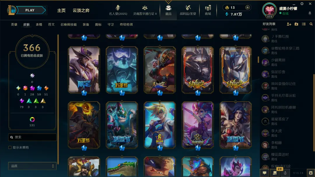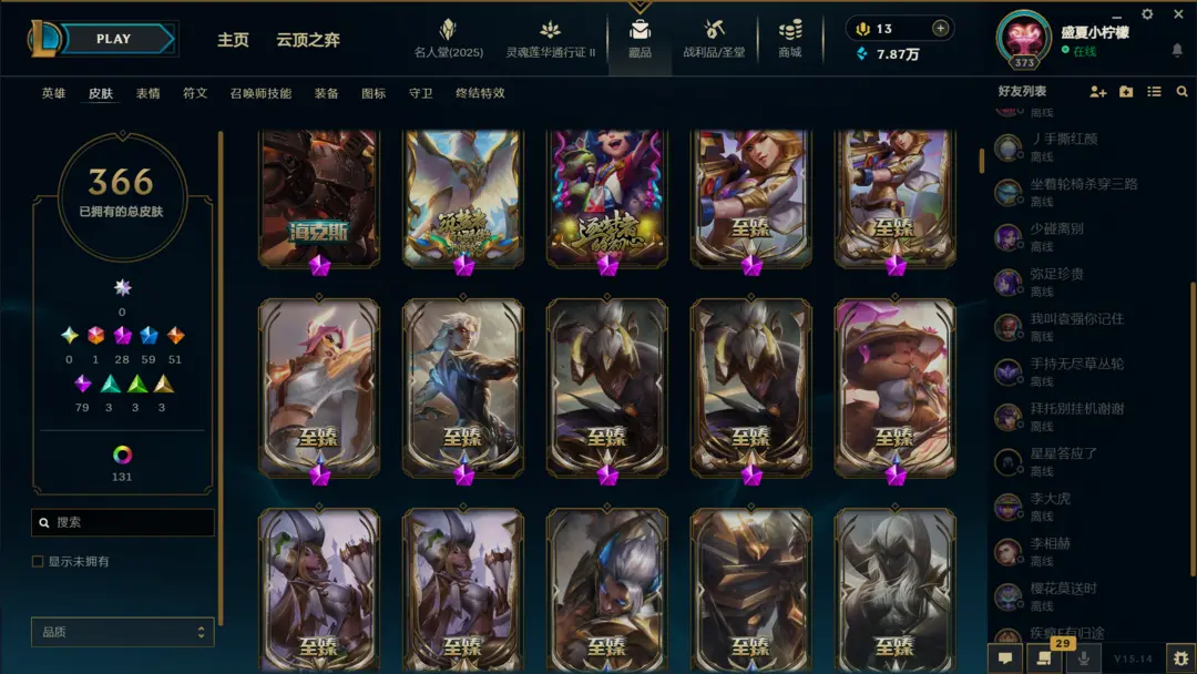| 角色: 盛夏小柠檬#19624 | 等级: 417级 华贵铂金IV |