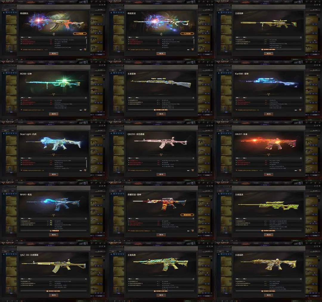 5色白鲨幻神音效卡巅峰降龙丹凤★白鲨QBZ冠军白虎森决★风神星神辉光圣灵★全音效卡全赛事皮肤6盘6烈