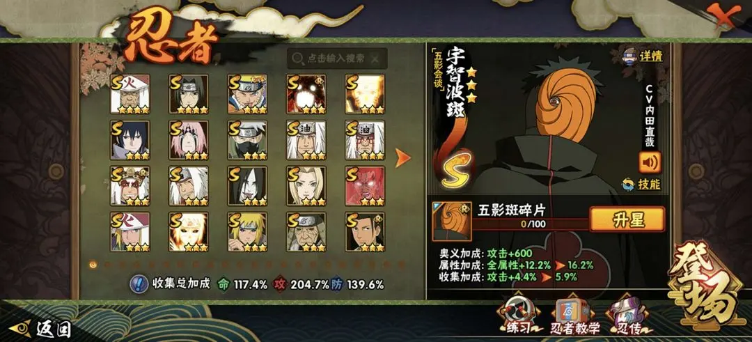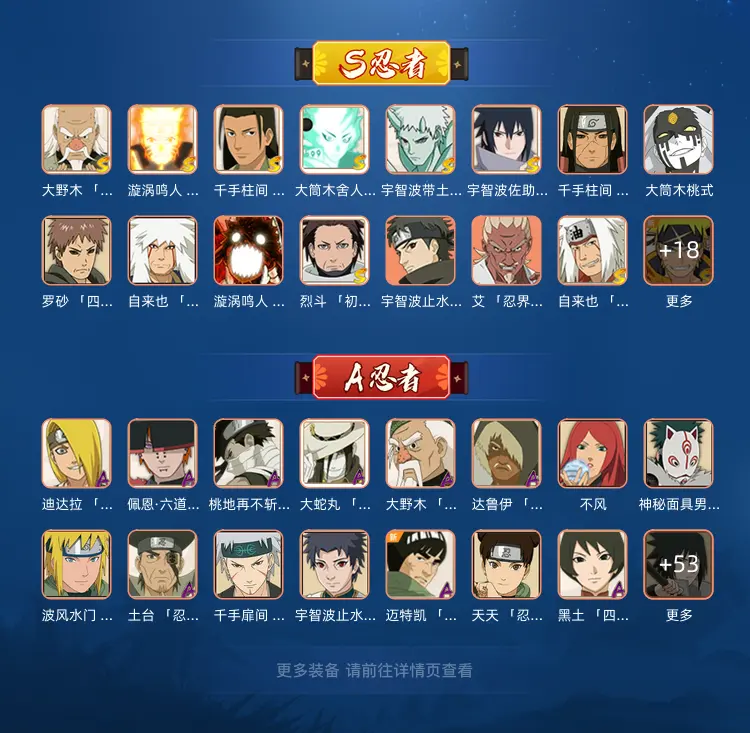 九喇嘛鸣人,卑留呼,新春止水,红月带土,侠影纲手,面麻,惊门凯,新春鼬,青年艾,青水,外星人,忍界大战大野木,忍战樱,长十郎,不缘,新春水门,新春小南,新春迪达拉,永恒佐助,忍战宁次,忍战天天,创立柱间,漂泊小南,漂泊扉间,漂泊佩恩,须佐鼬,忍界大战迈特凯,泳装照美冥,黑土,泳装小南,秽土三代,大筒木桃式,漂泊再不斩,晓蛇,骨架狗漂泊带土,夏日黑土,黑绝,十尾带土,五影会谈斑,三代目风影