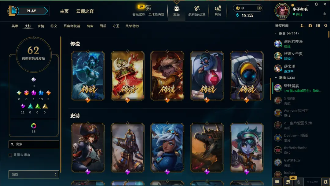 | 角色: 小子有毛#45199 | 等级: 865级 华贵铂金IV |