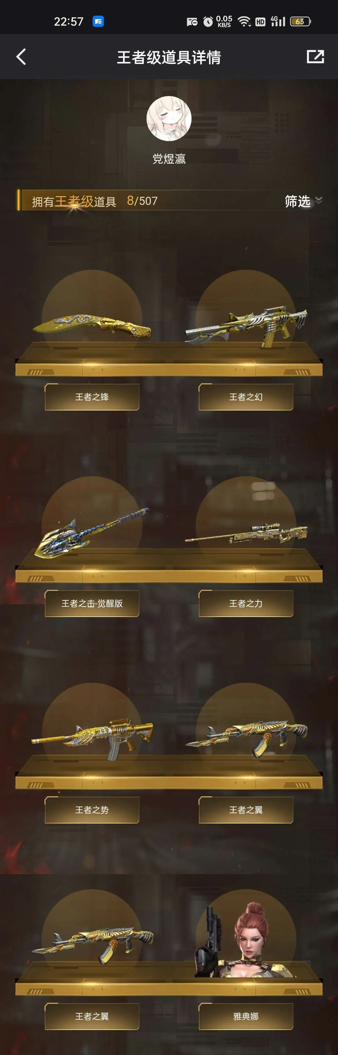 【英雄:34 王者:12】王者之翼✸王者之幻✸炫金武士✸源·火麒麟✸M4A1-雷神✸不要毁号